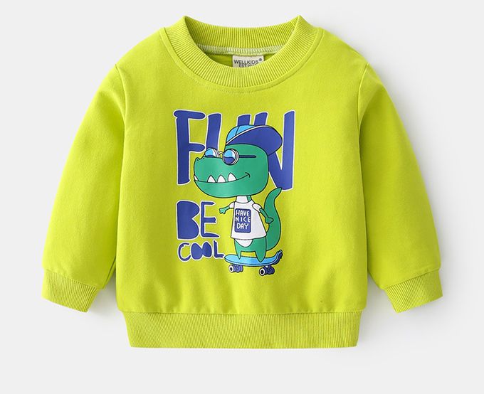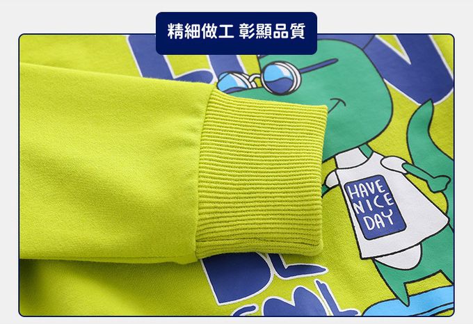 圓領寬鬆運動服套裝-滑板恐龍-螢光綠