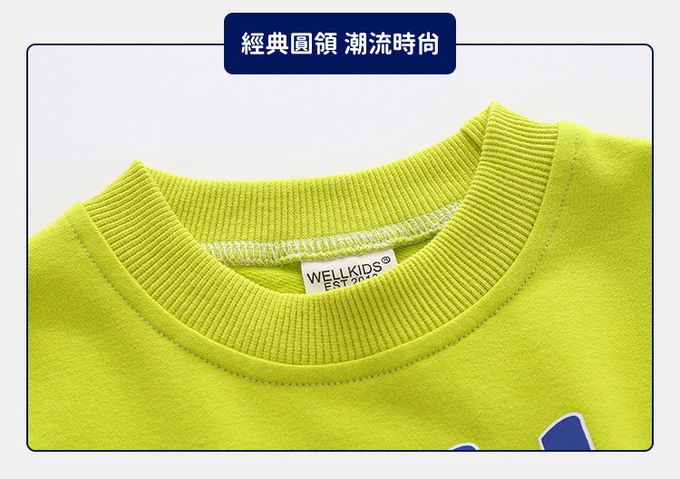 WELLKIDS - 圓領寬鬆運動服套裝-恐龍散步-黃+灰