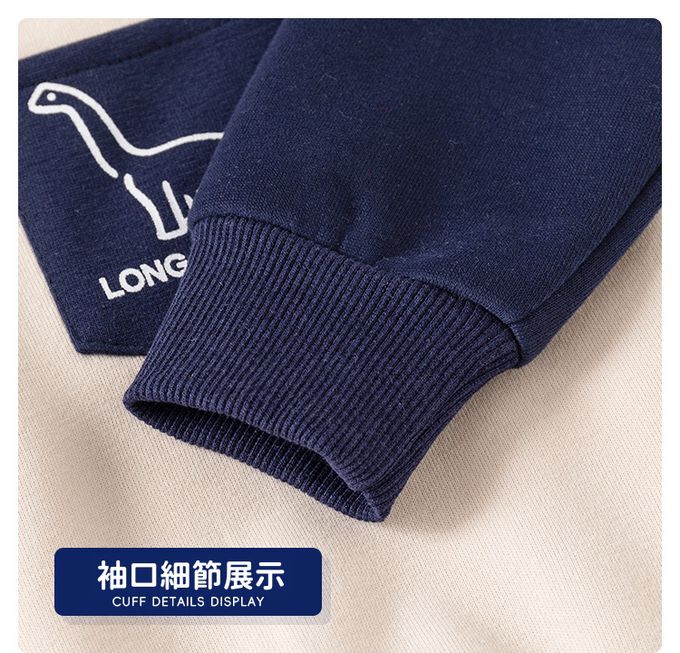 WELLKIDS - 圓領寬鬆運動服套裝-恐龍散步-藍+灰