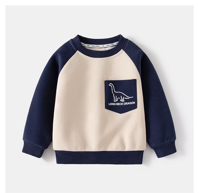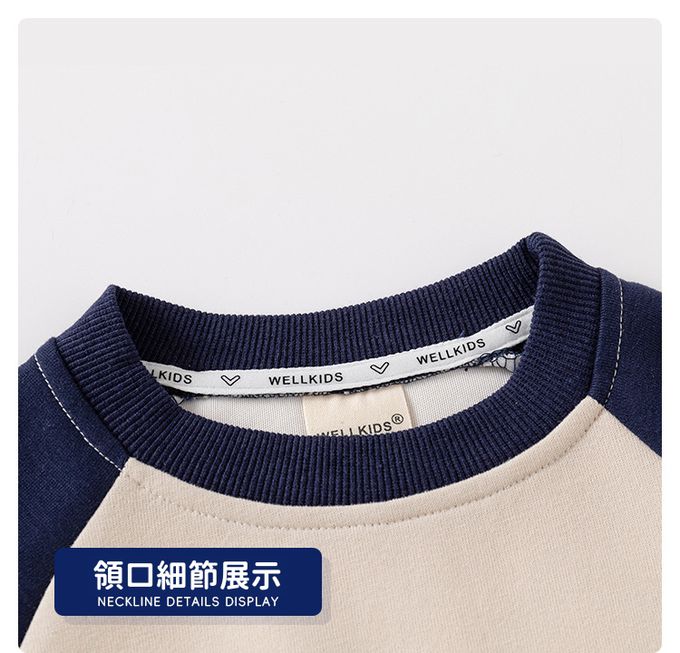WELLKIDS - 圓領寬鬆運動服套裝-恐龍散步-杏+灰