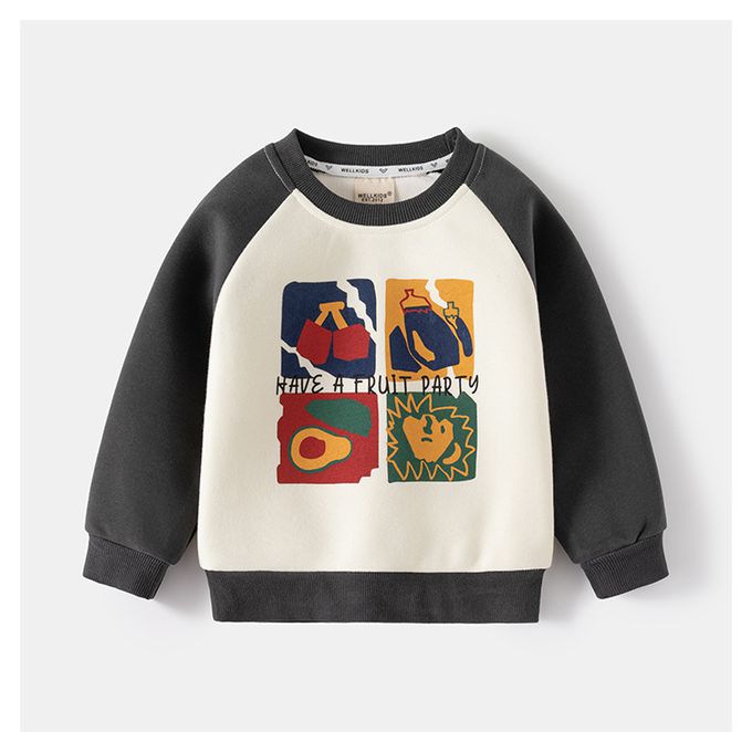 WELLKIDS - 圓領寬鬆運動服套裝-恐龍散步-杏+灰