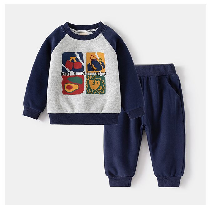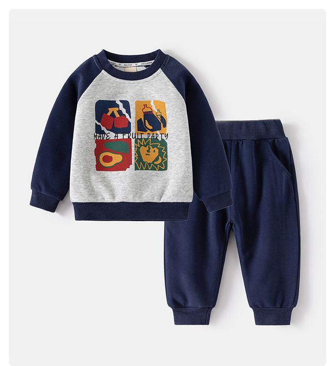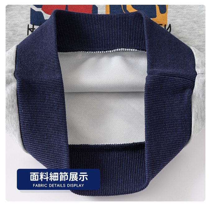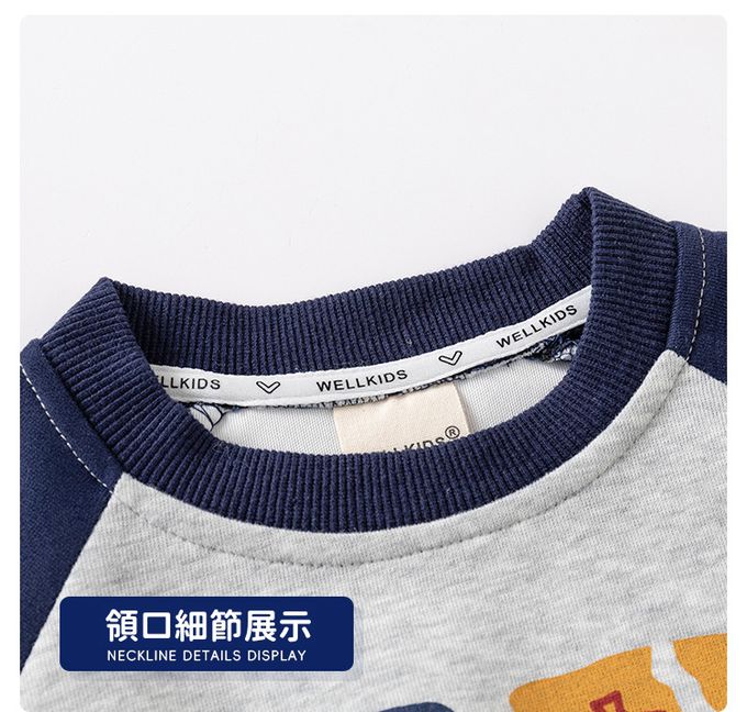 WELLKIDS - 圓領寬鬆運動服套裝-恐龍散步-藍+灰