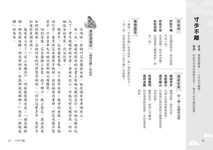 每則成語附上語義與範例、同義詞、成語家族、動動腦筋、成語加油站,加深學習印象,將成語學習生活化,使孩子對成語的運用更加靈活。