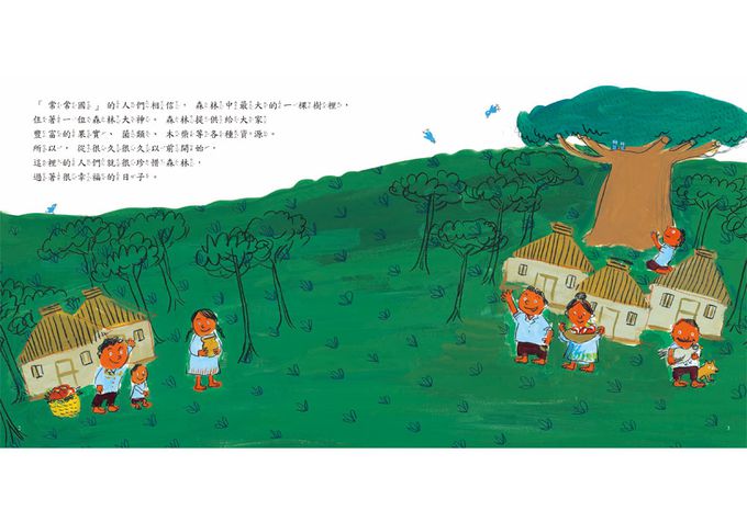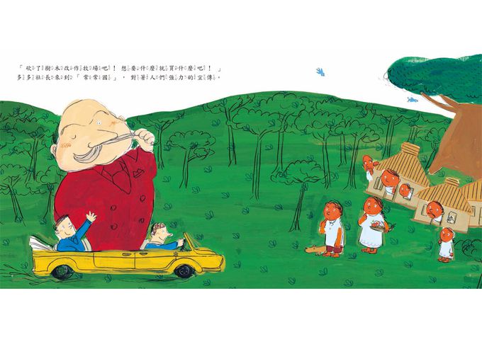 這本繪本所描述的「常常國」人們,就是如此。他們原本一如往常,依靠著森林的豐富資源,過著幸福的日子,也對森林充滿崇敬與感激。但是當對金錢抱持多多益善態度的「多多國」多多社長來了,為他們畫出閃亮亮的「錢」景,一切就改變了……。