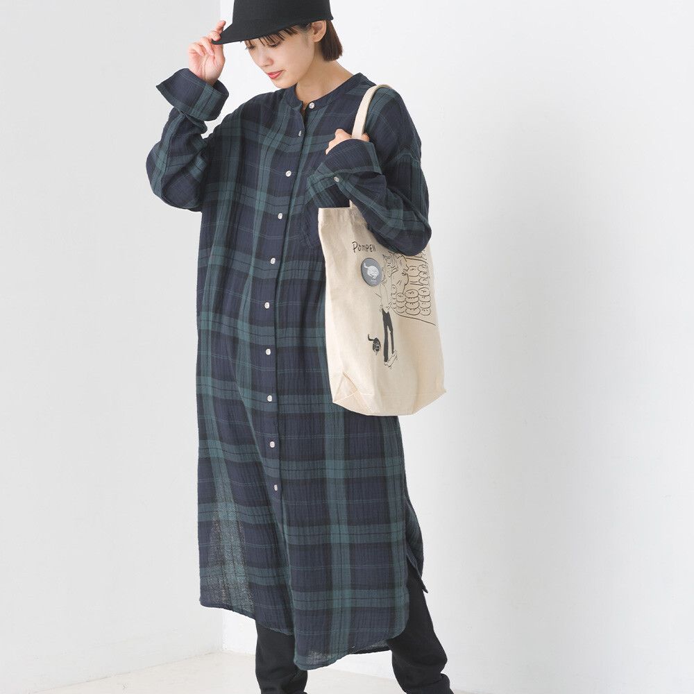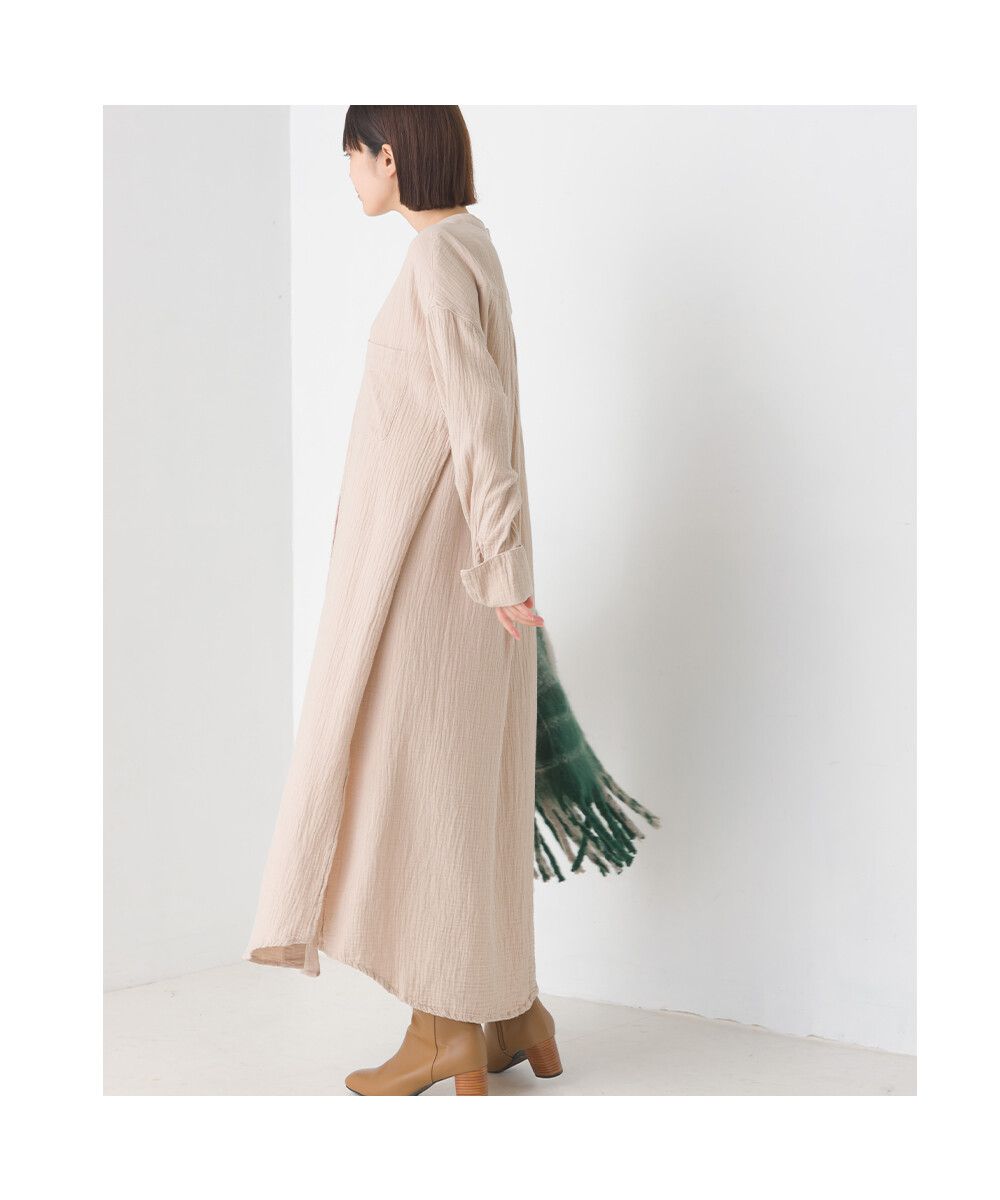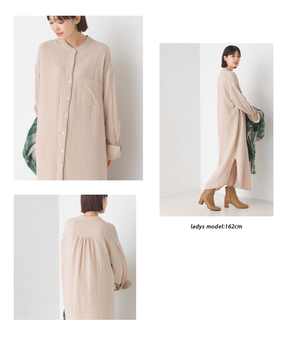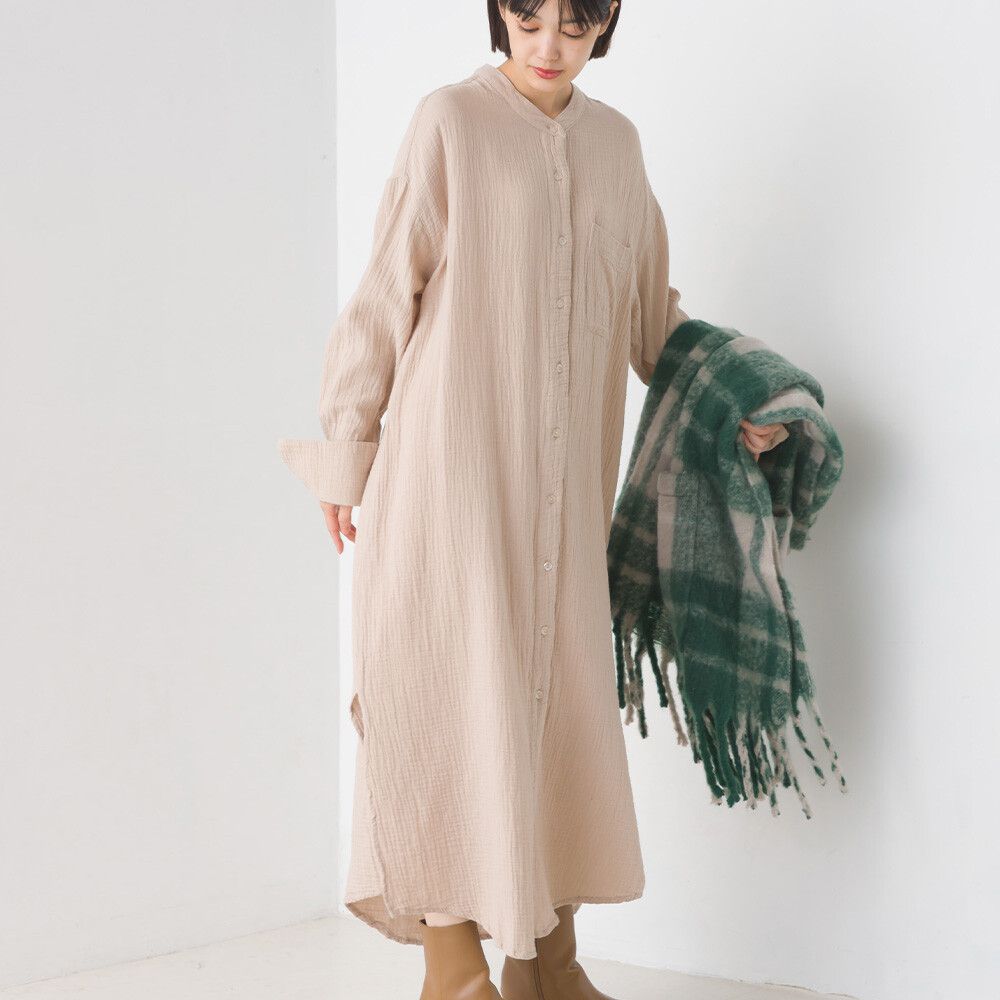 純棉柔軟二重紗襯衫式洋裝