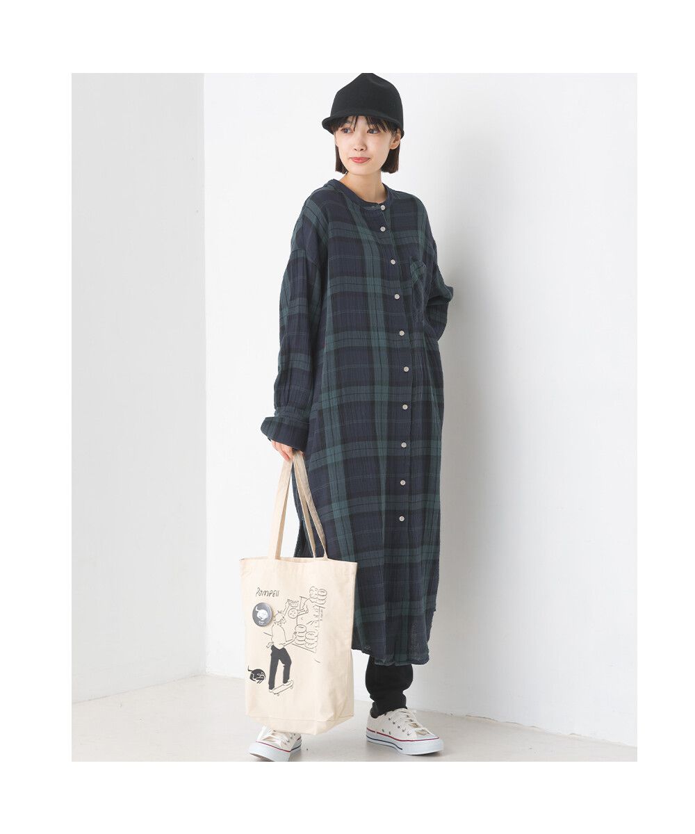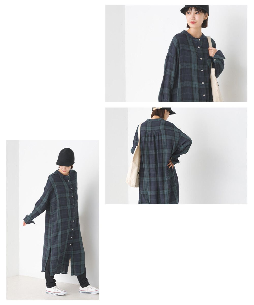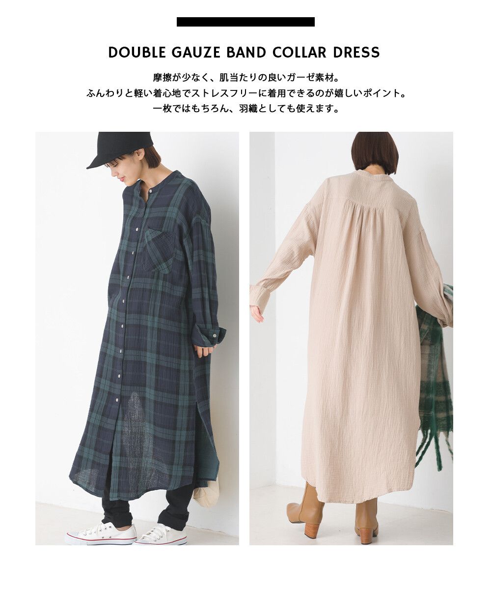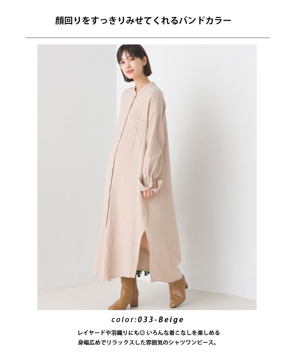 純棉柔軟二重紗襯衫式洋裝