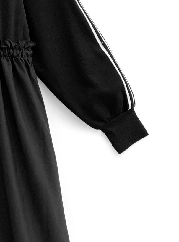日本 GRL - 運動風拉鍊翻領抽繩腰長袖洋裝-黑 (F)