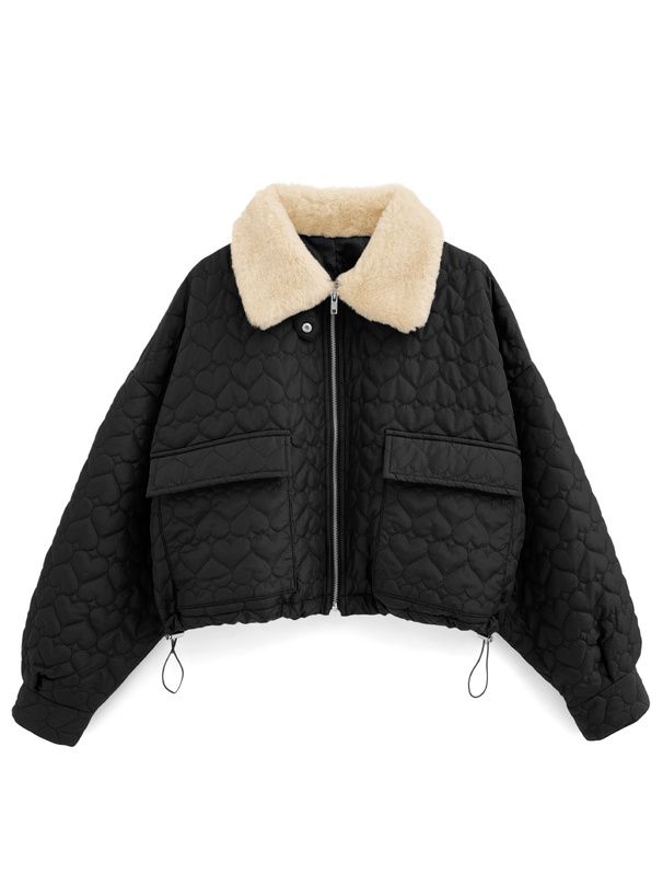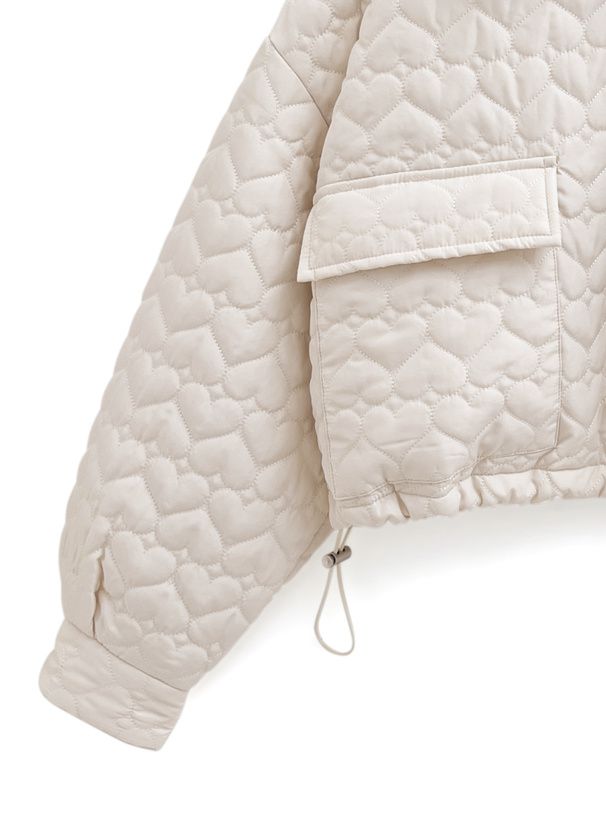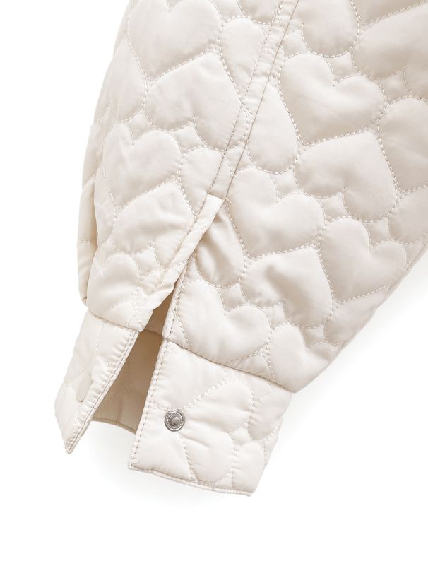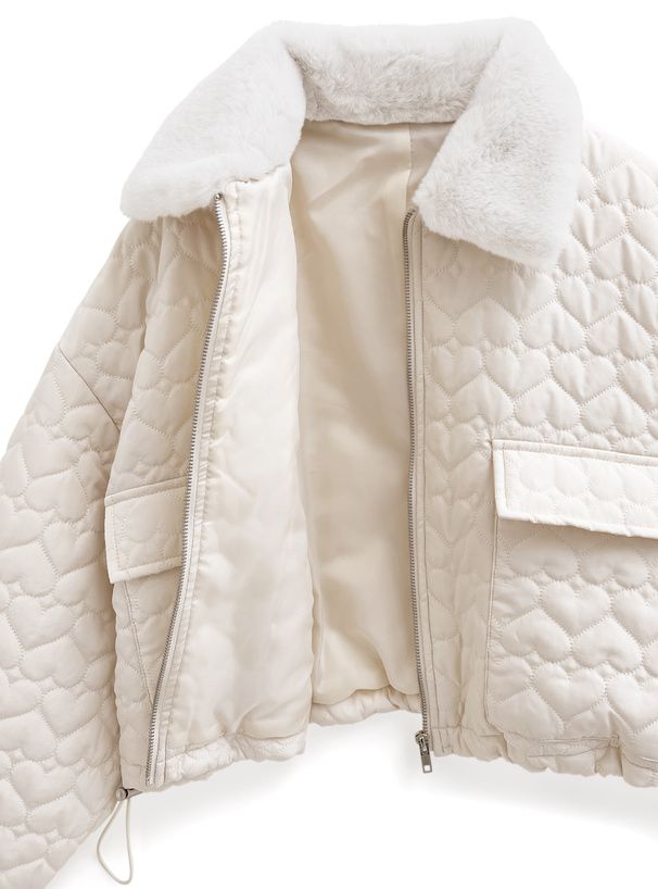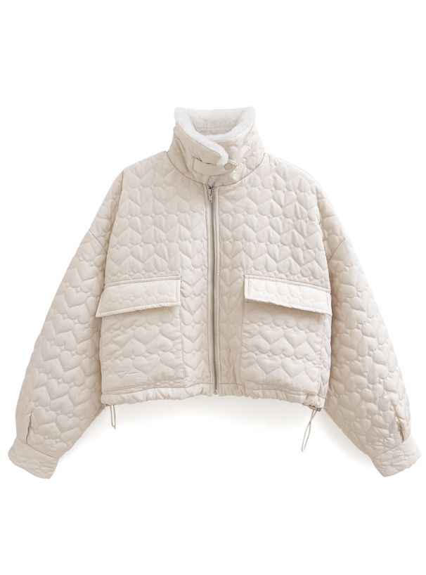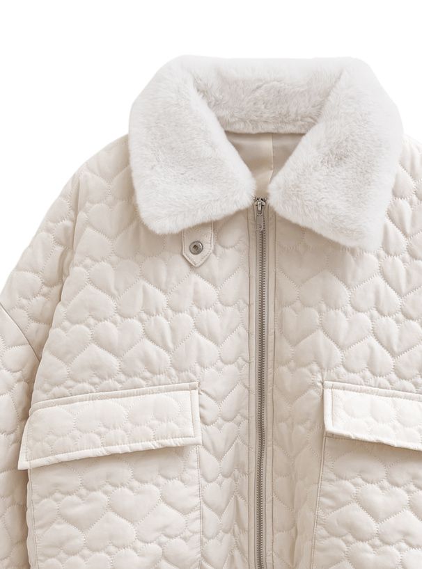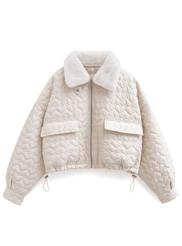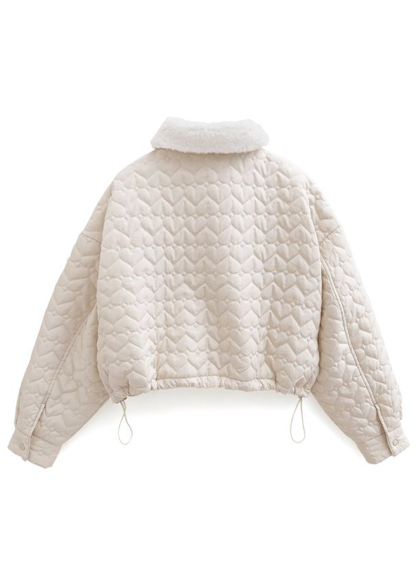 日本 GRL - 毛毛領心型絎縫保暖拉鍊外套-象牙白 (F)