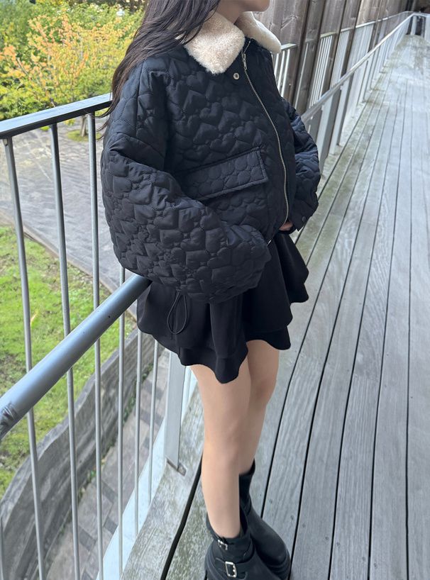 • 品名:毛毛領心型絎縫保暖拉鍊外套