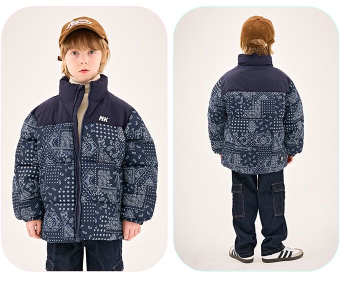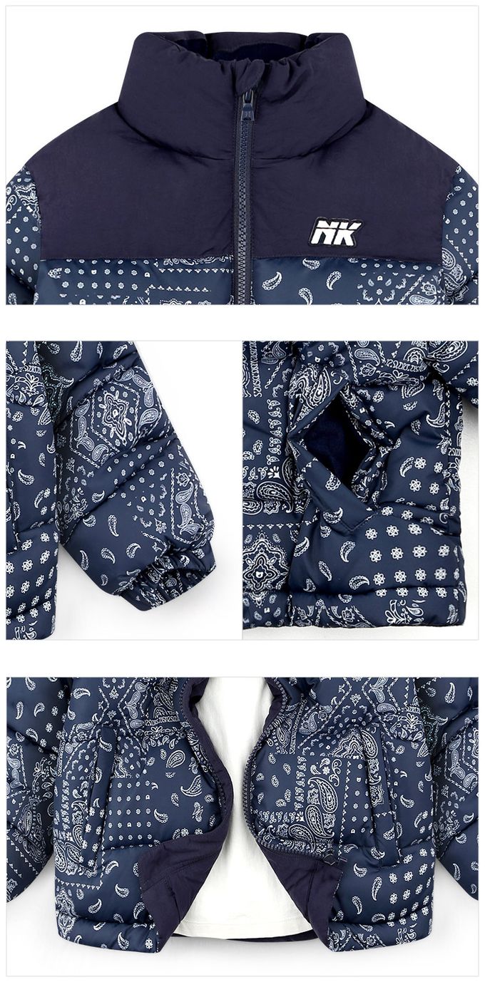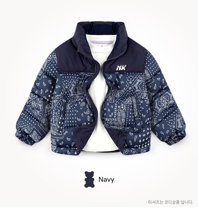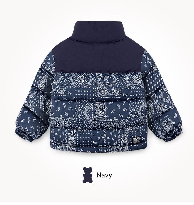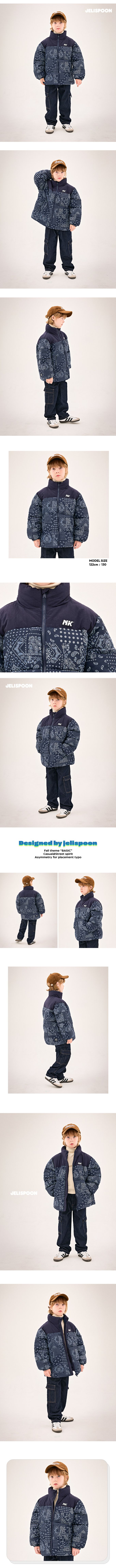 韓國 Jelispoon - 變形蟲圖騰蓬鬆保暖填充外套-海軍藍