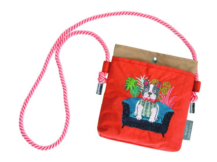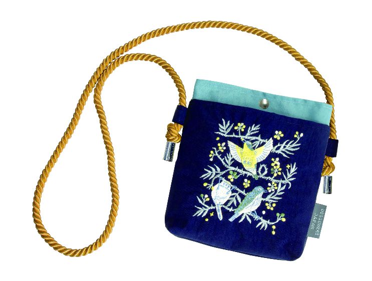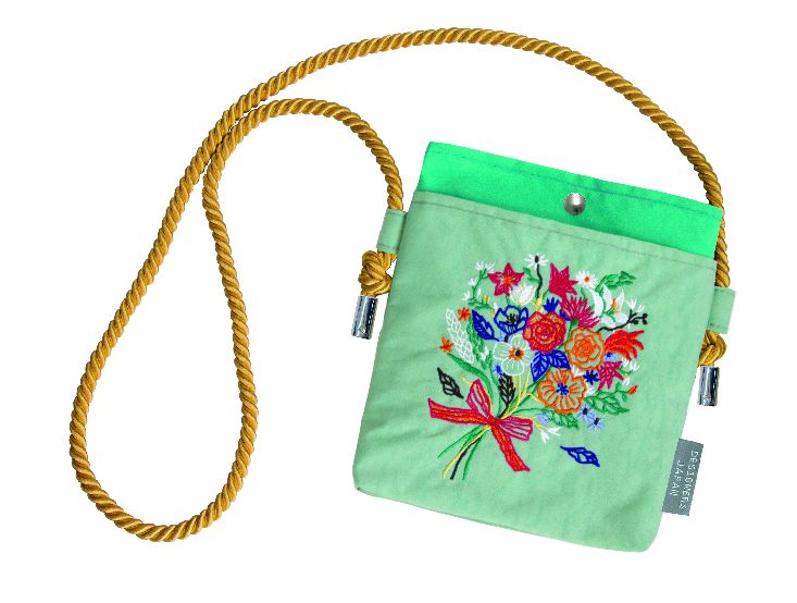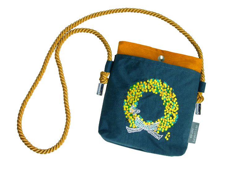 日本 PRAIRIE DOG - 精緻刺繡配色尼龍側背小包-優雅花圈-墨綠x黃