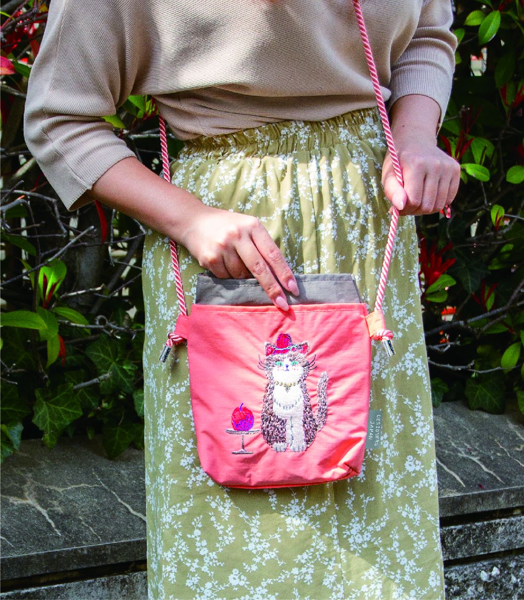 精緻刺繡配色尼龍側背小包-優雅花圈-墨綠x黃