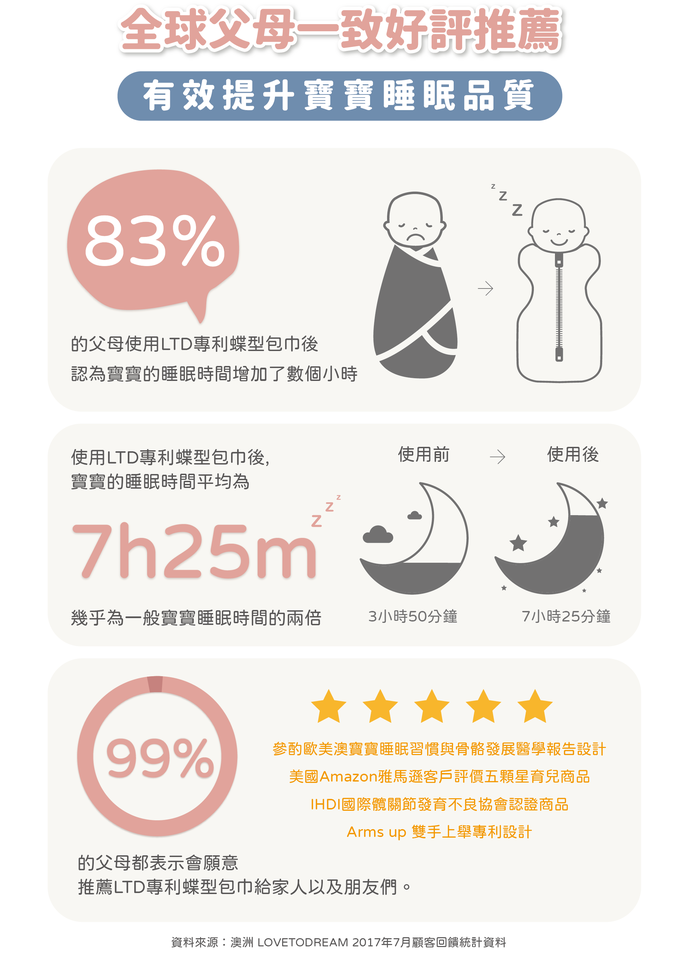 Love to dream 的包巾真的是媽媽們的最愛,寶寶用了輕鬆睡過夜❤️