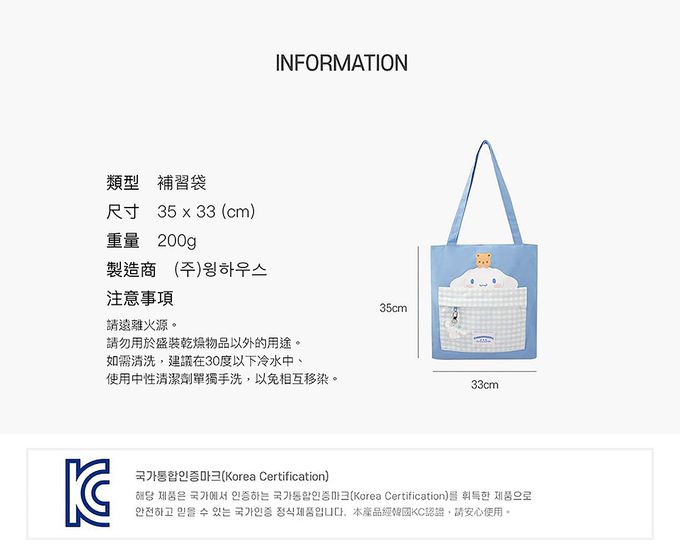 韓國 Alpha 連線 - 卡通人物大耳狗手提/肩背補習袋-天藍 (33x35x2.5cm)