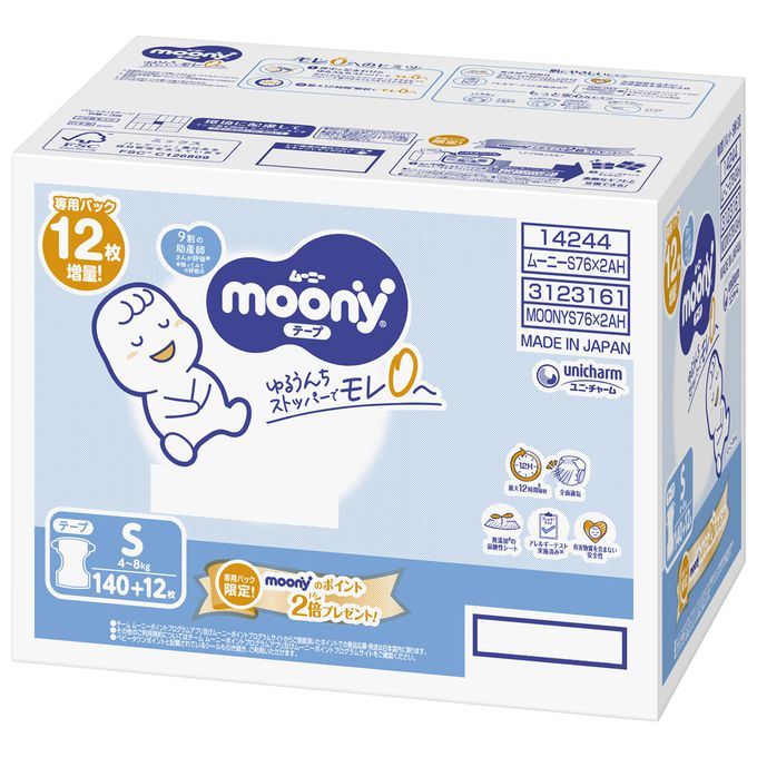 品名:滿意寶寶 Moony日本頂級紙尿褲 S號 76片x2 阿卡將本舖專賣品-日本製