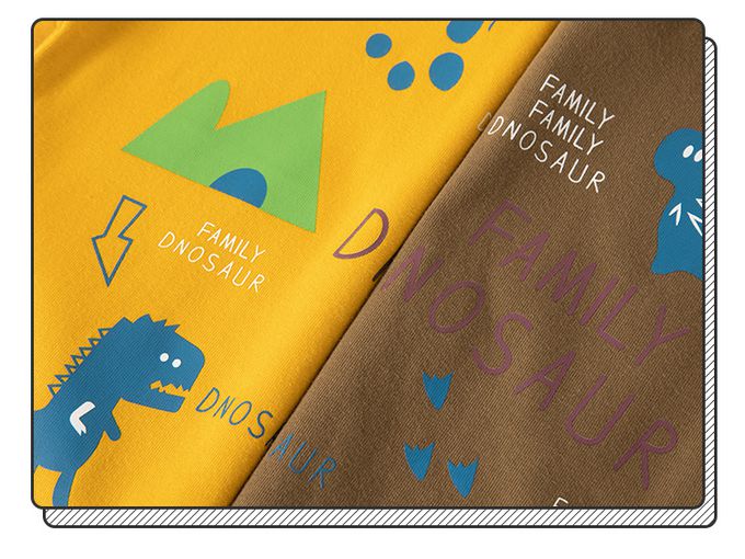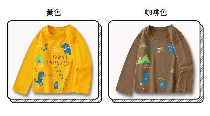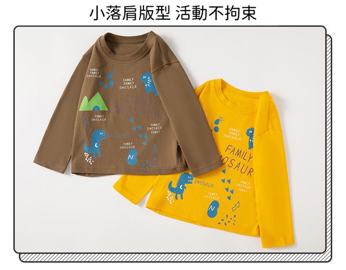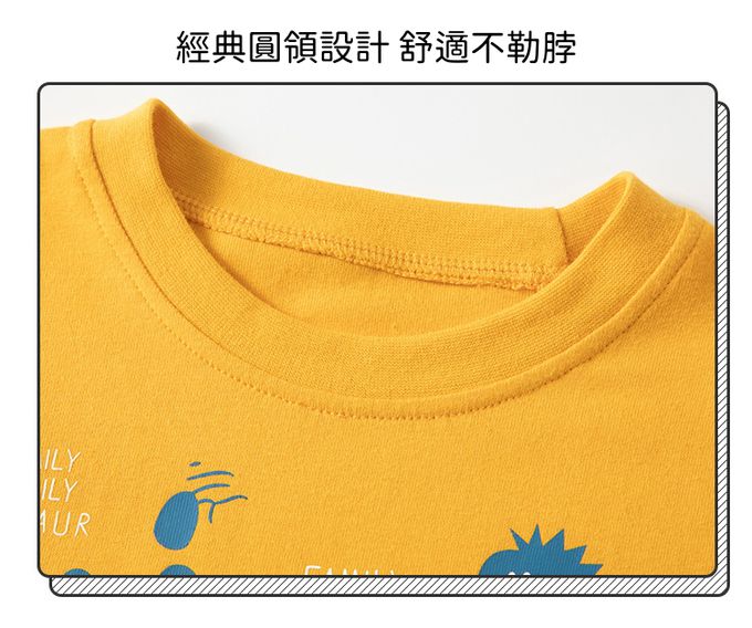 純棉圓領薄長袖上衣-恐龍家族-黃色