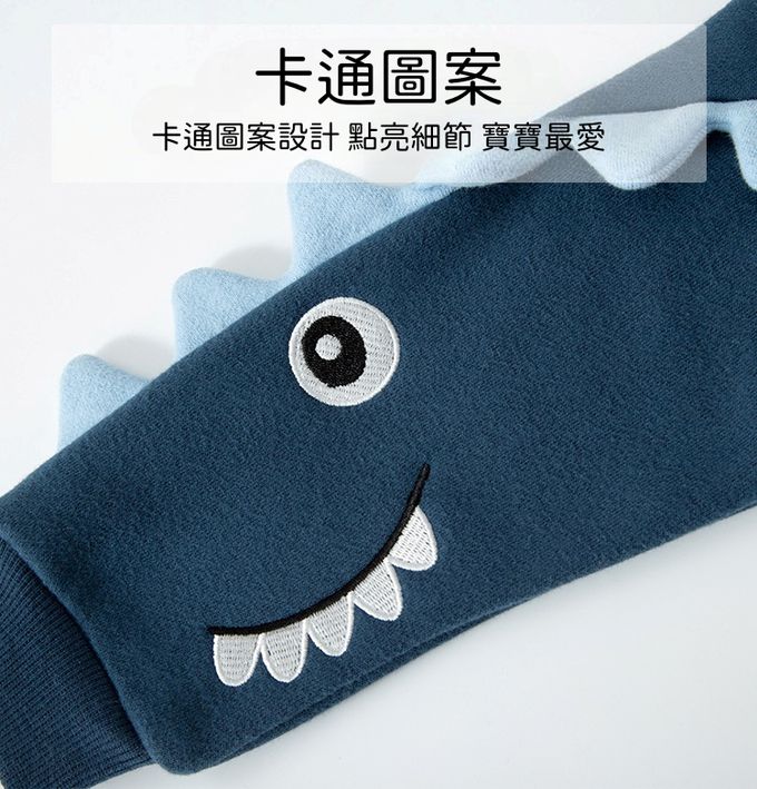 加絨圓領立體長袖上衣/大學T-超萌恐龍造型-藍色