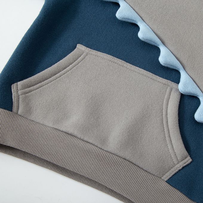 BE TOP - 加絨圓領立體長袖上衣/大學T-超萌鯊魚造型-藍色