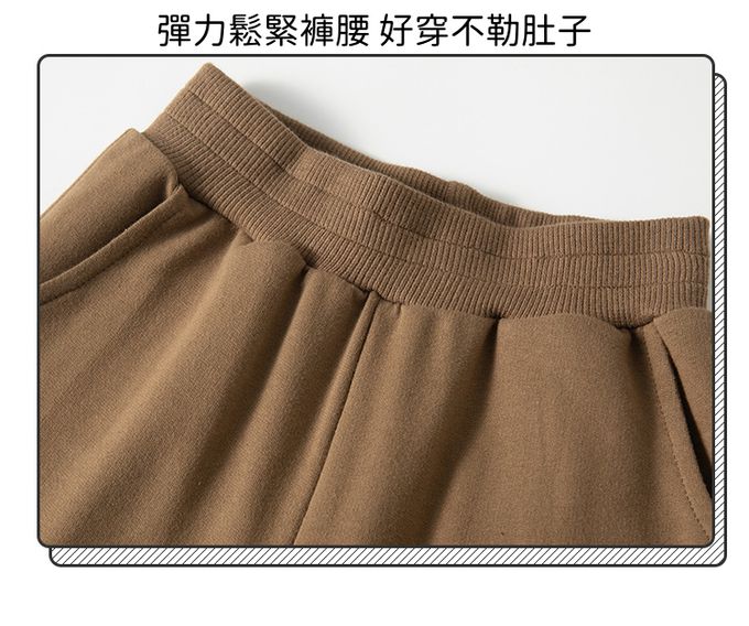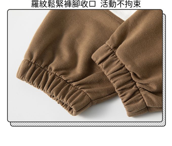 純棉休閒長褲-可愛嘴嘴牙齒-棕咖