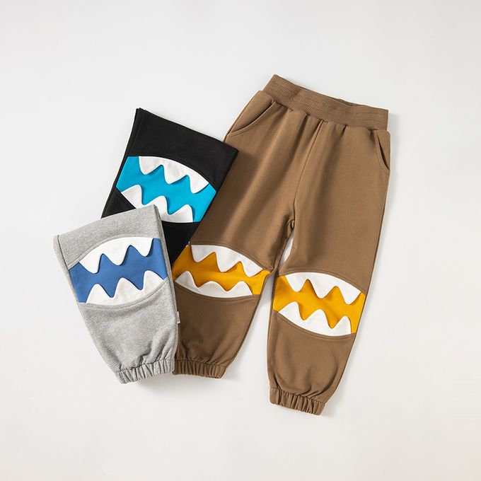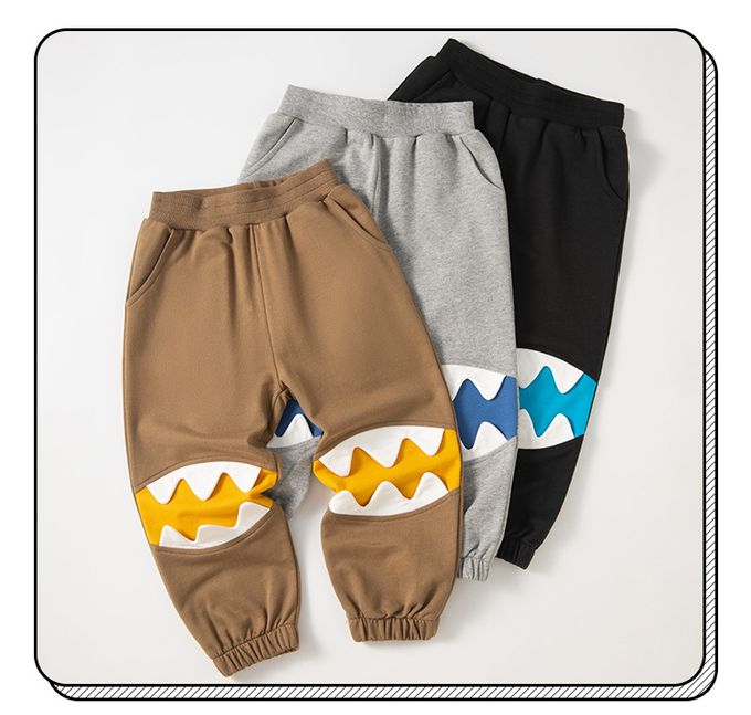 BE TOP - 純棉休閒長褲-繽紛立體恐龍-藍色