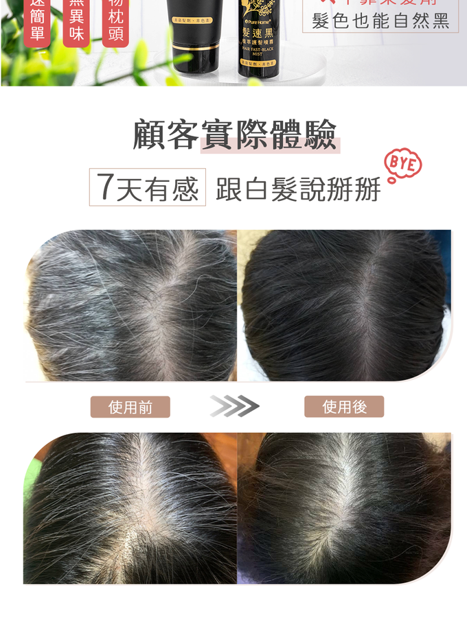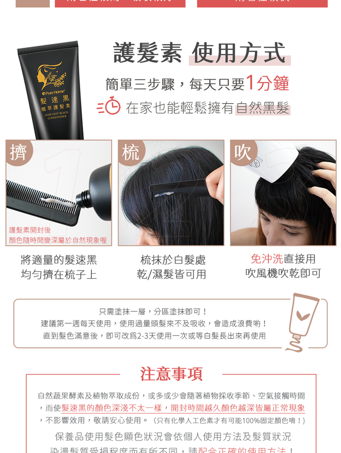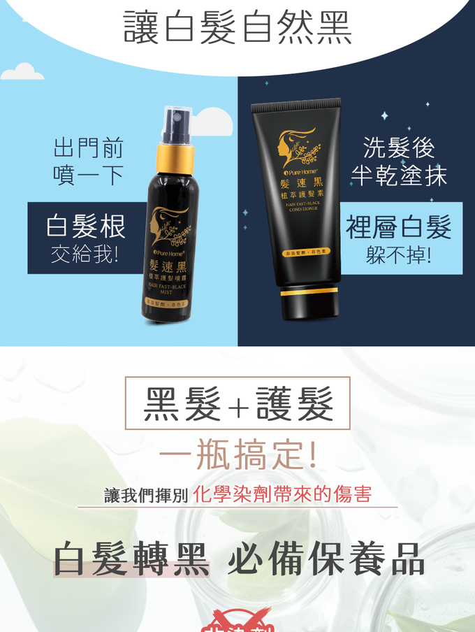 無毒家園 PureHome - 髮速黑植萃護髮素|白髮救星-75ml×3