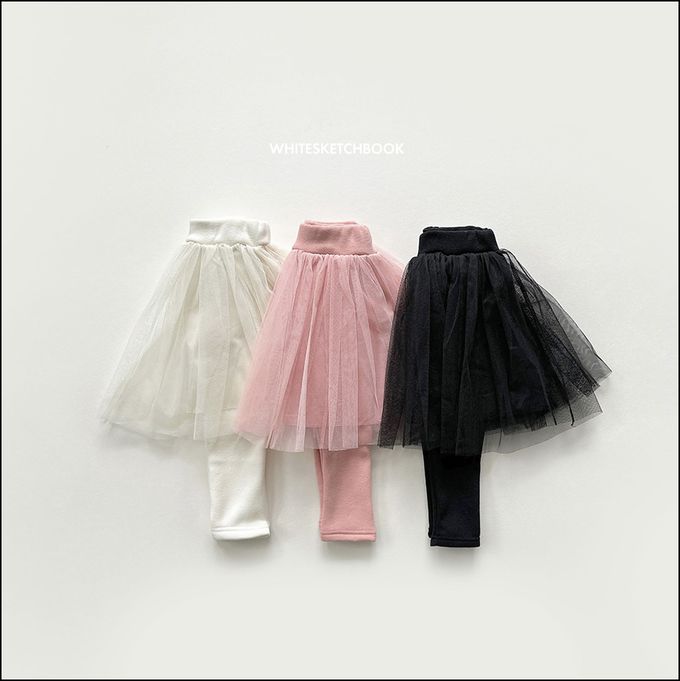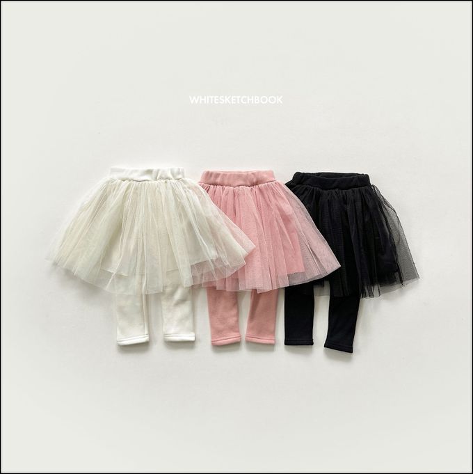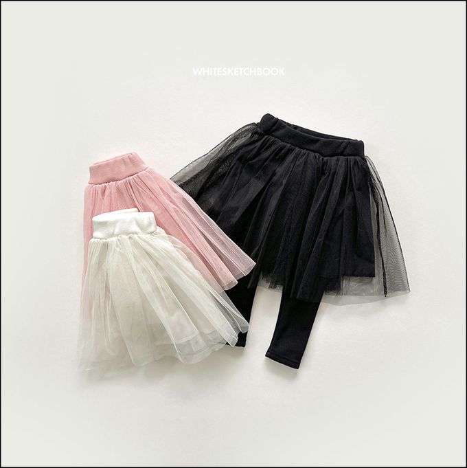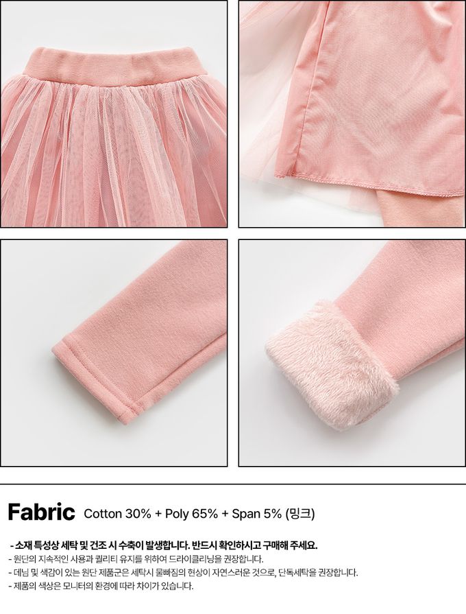 韓國南大門童裝 - W.S.B. 鬆緊腰層次網紗內刷毛內搭褲裙-粉