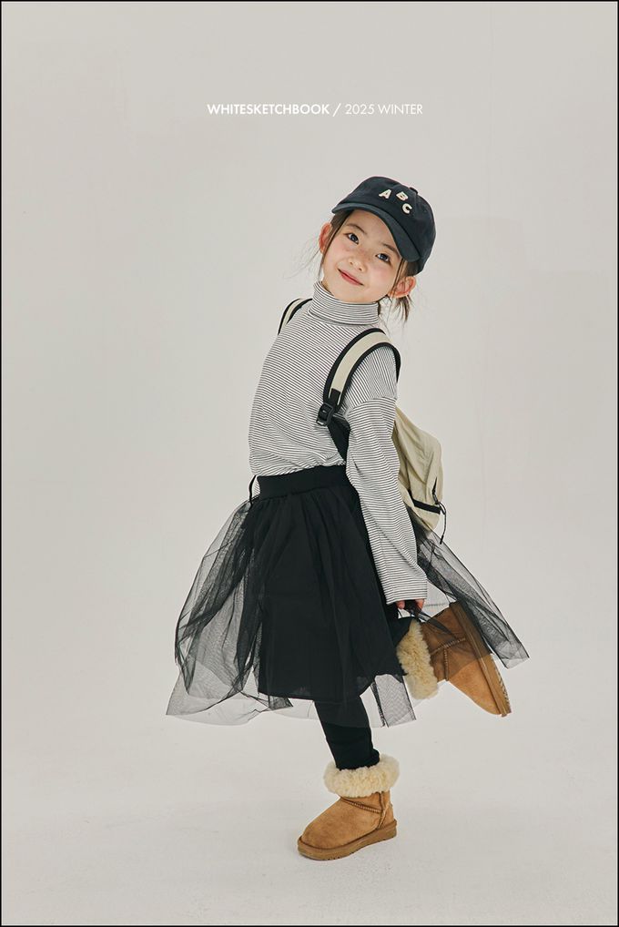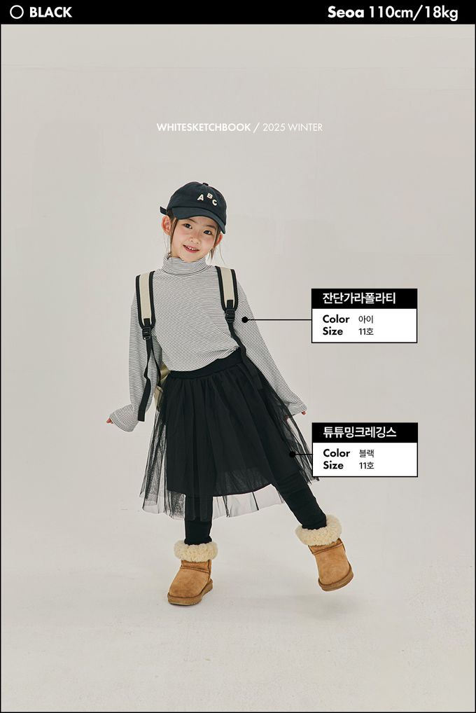 韓國南大門童裝 - W.S.B. 鬆緊腰層次網紗內刷毛內搭褲裙-黑