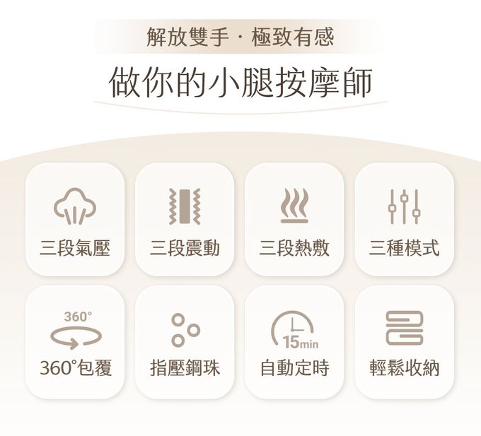 3D 氣囊設計,三段氣壓仿真按摩體驗