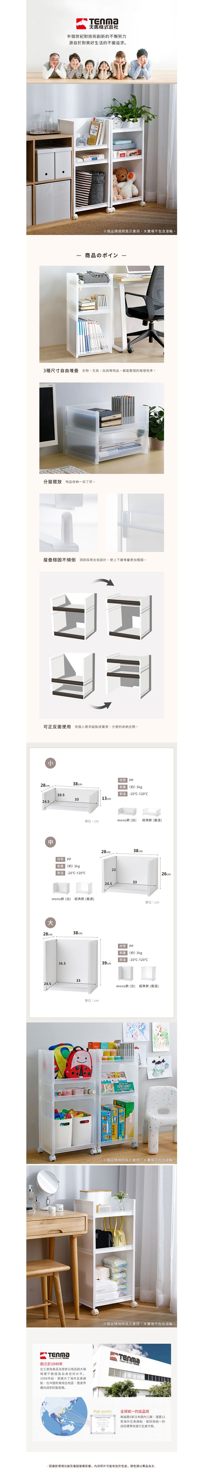 詳細尺寸:[小]寬38×深28×高13cm、[內徑]寬33×深24.5×高10.5cm [中]寬38×深28×高26cm、[內徑]寬33×深24.5×高23cm [大]寬38×深28×高39cm、[內徑]寬33×深24.5×高36.5cm