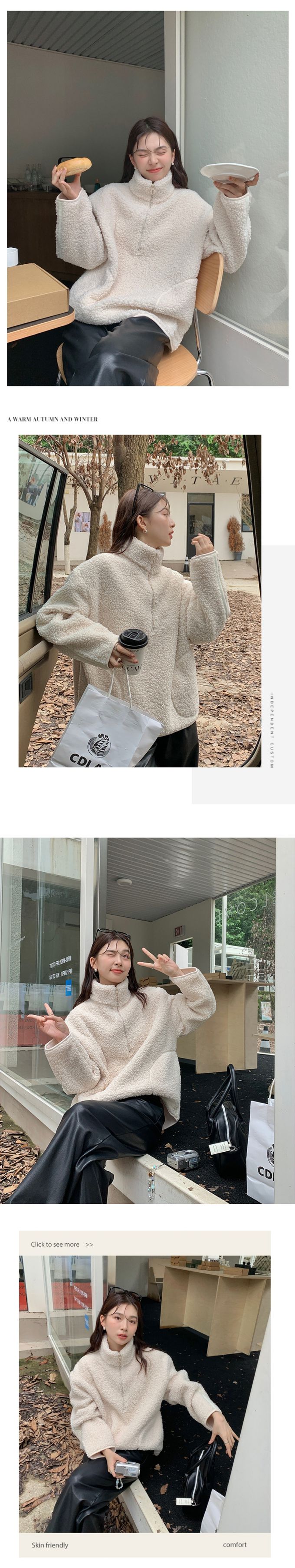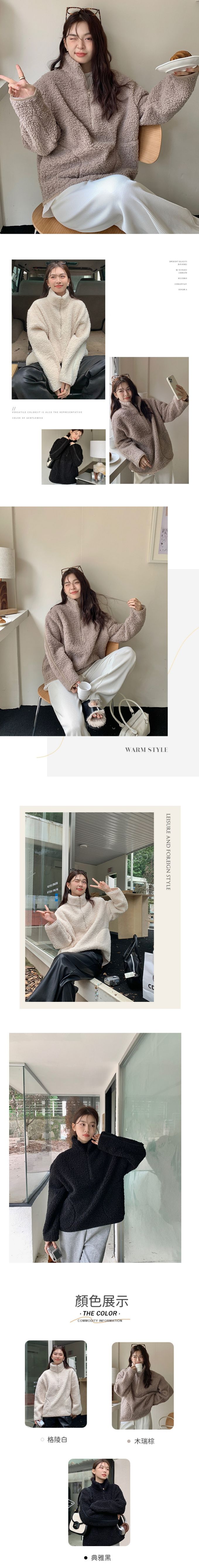 品名:高領半開襟泰迪熊絨毛長袖上衣
