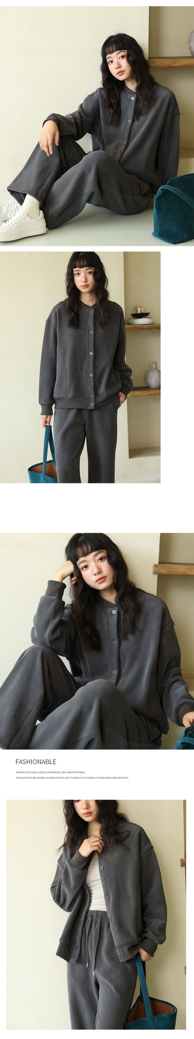 高腰顯瘦搖粒絨保暖直筒長褲-星空灰