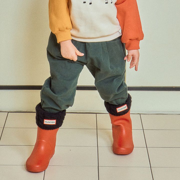 韓國 First Blue - 鬆緊腰好搭配桃皮絨長褲-深軍綠