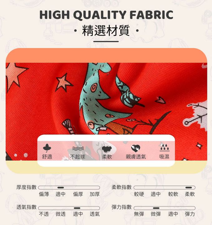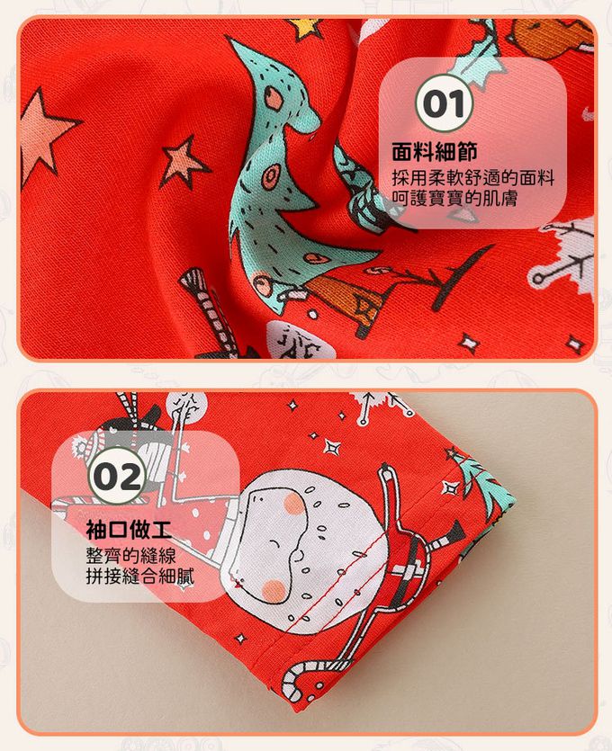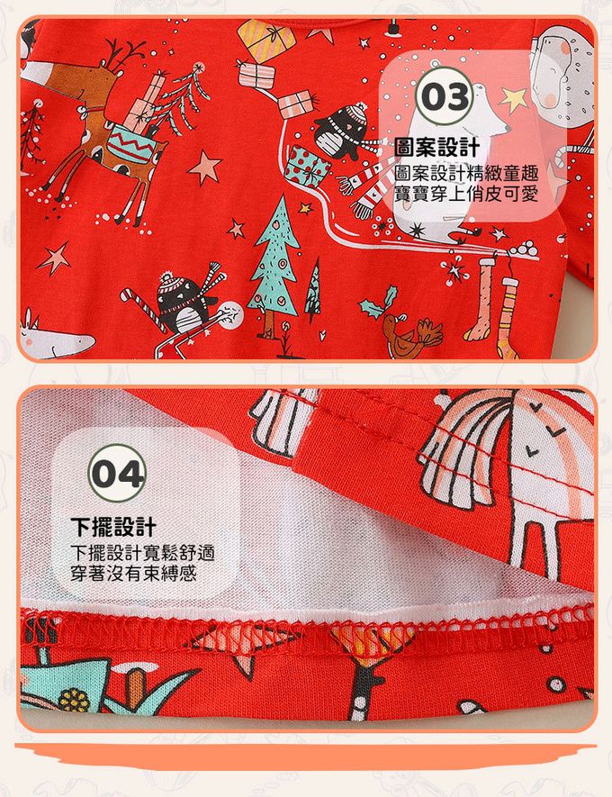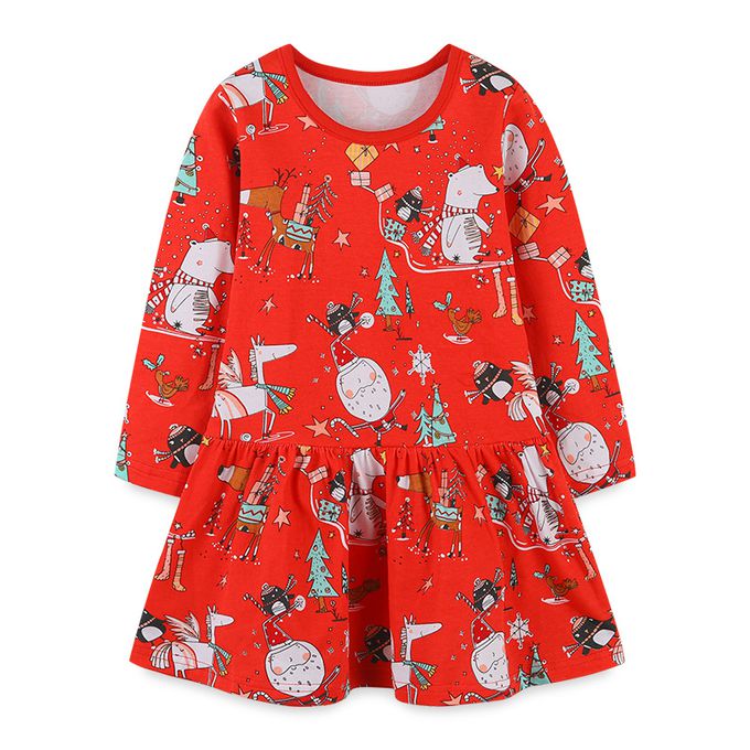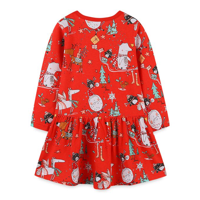 [聖誕節]純棉圓領長袖洋裝-童趣聖誕畫風-紅色