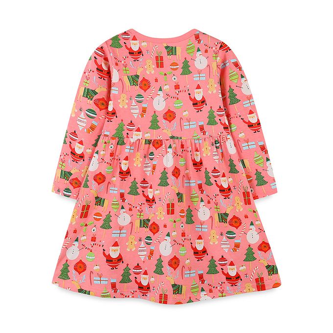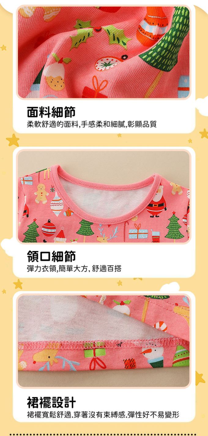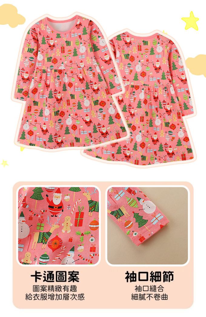 [聖誕節]純棉圓領長袖洋裝-滿滿聖誕氛圍-粉色