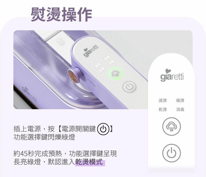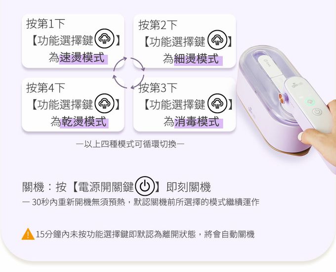 4種熨燙模式 速燙/細燙/乾燙/消毒