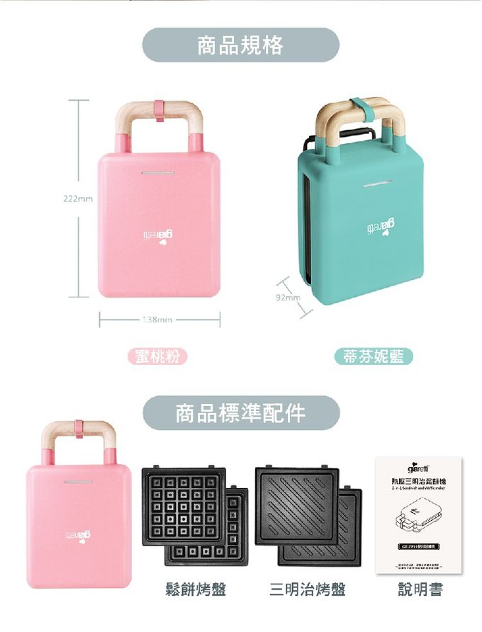 品名:熱壓三明治機/鬆餅機(GT-SW01) 兩色任選