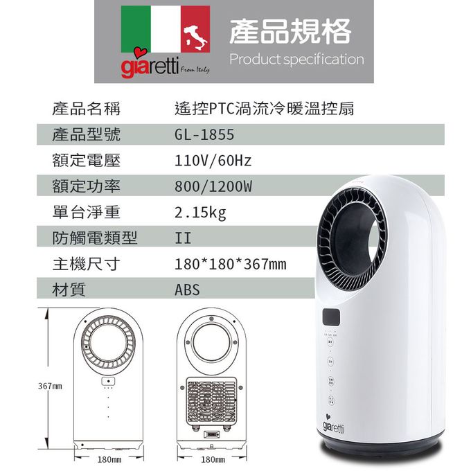 品名:冷暖兩用遙控溫控扇(GL-1855)