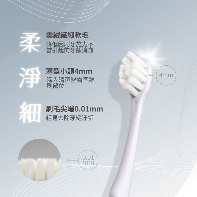 ‧ 細>尖端<0.01纖毛,深達齒縫去除頑固牙菌斑