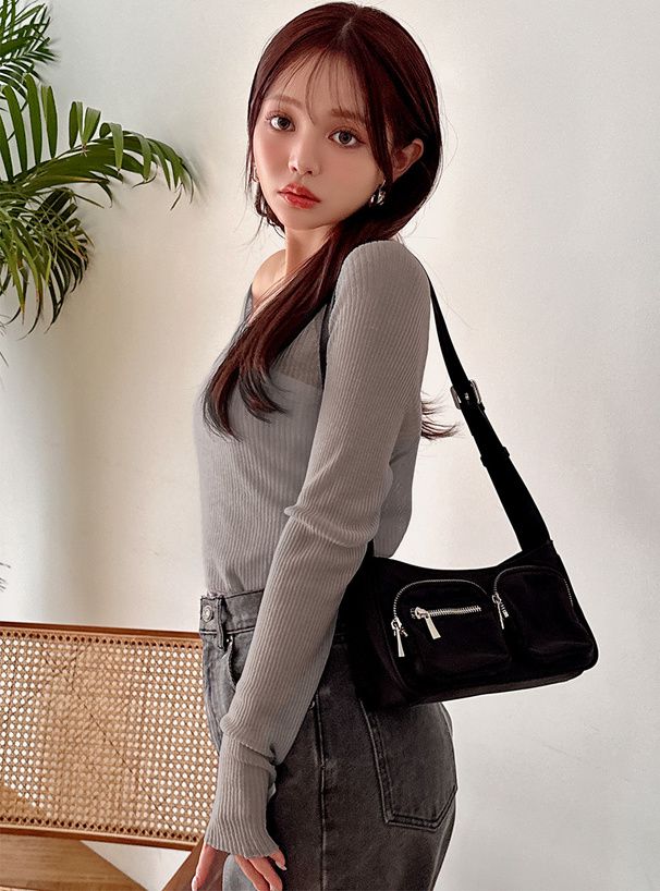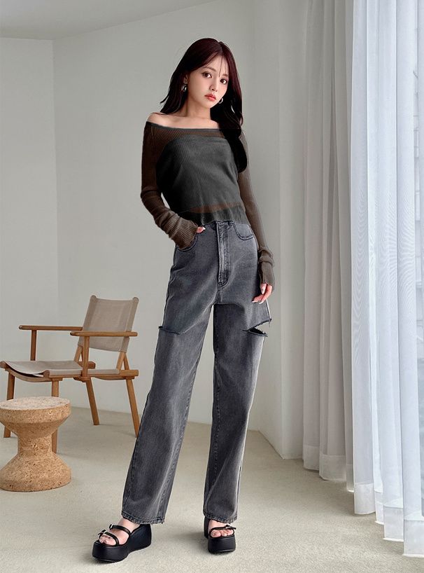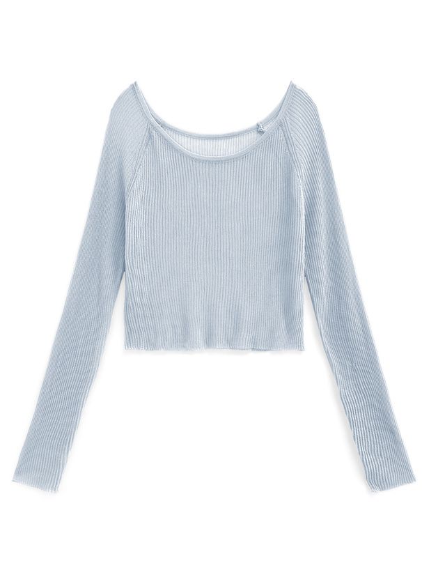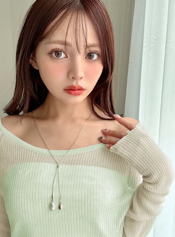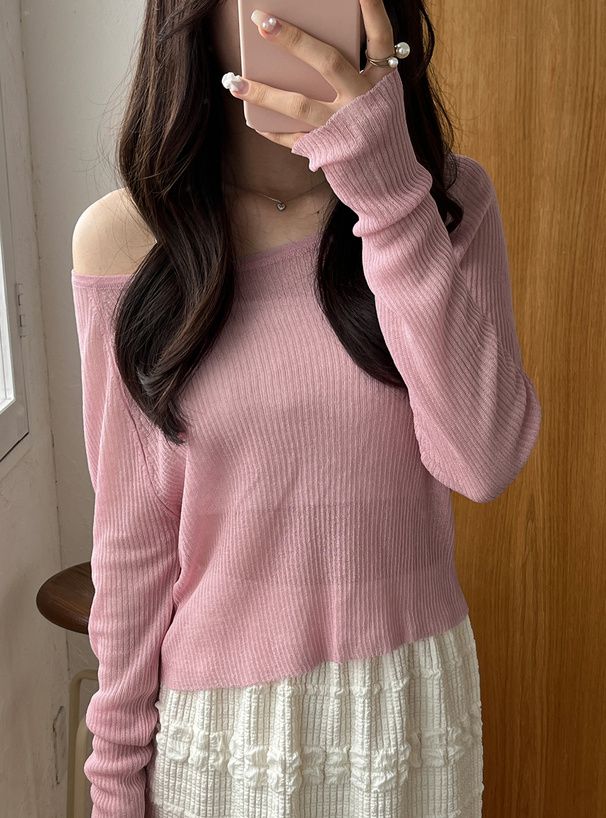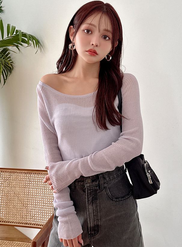 透膚性感大U領薄針織上衣