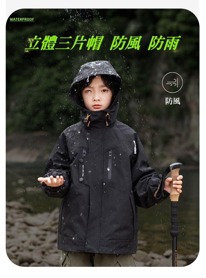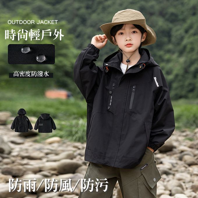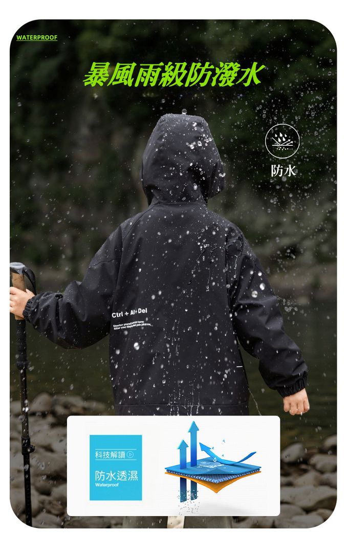 防風防水高領連帽款衝鋒外套-帥氣黑