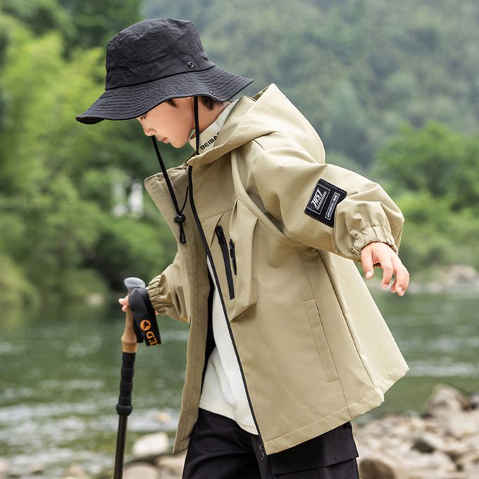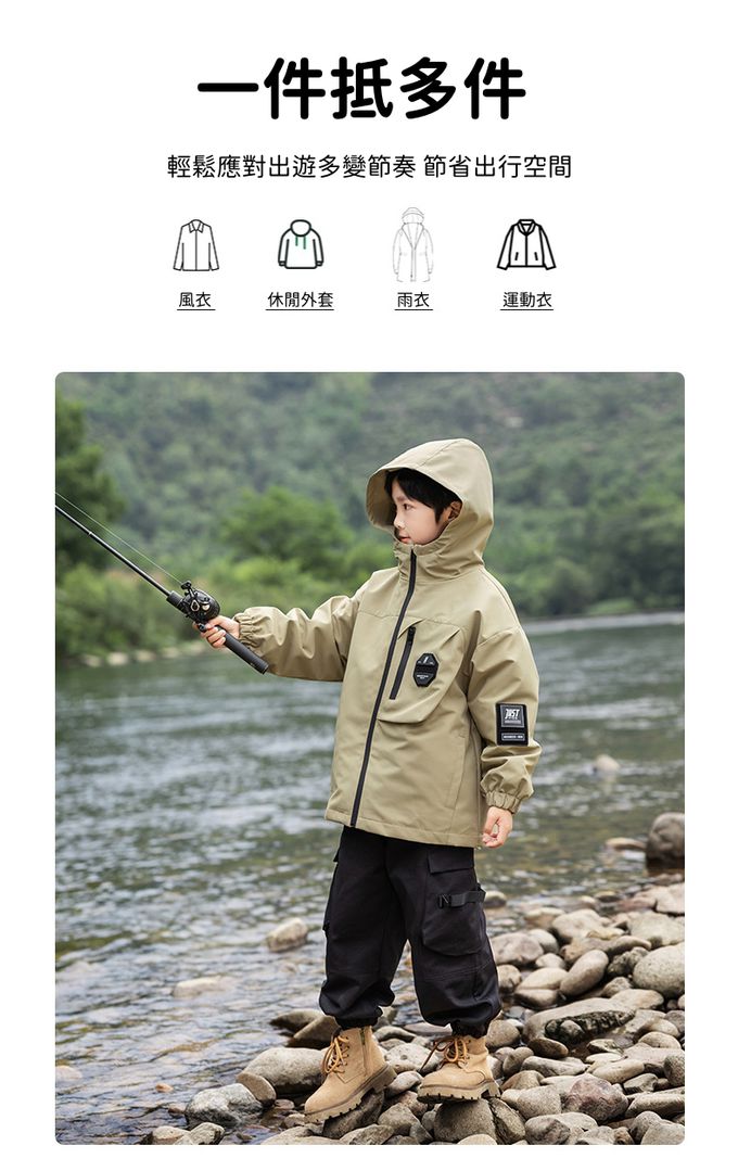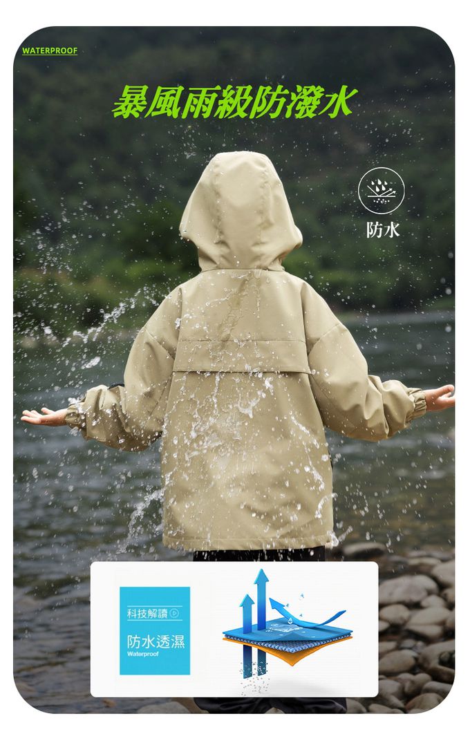 babybody - 防風防水高領連帽款衝鋒外套-拼色灰