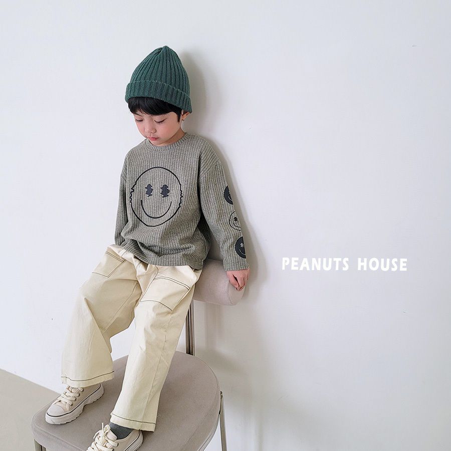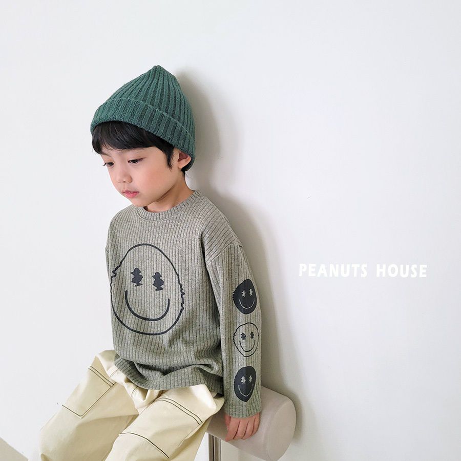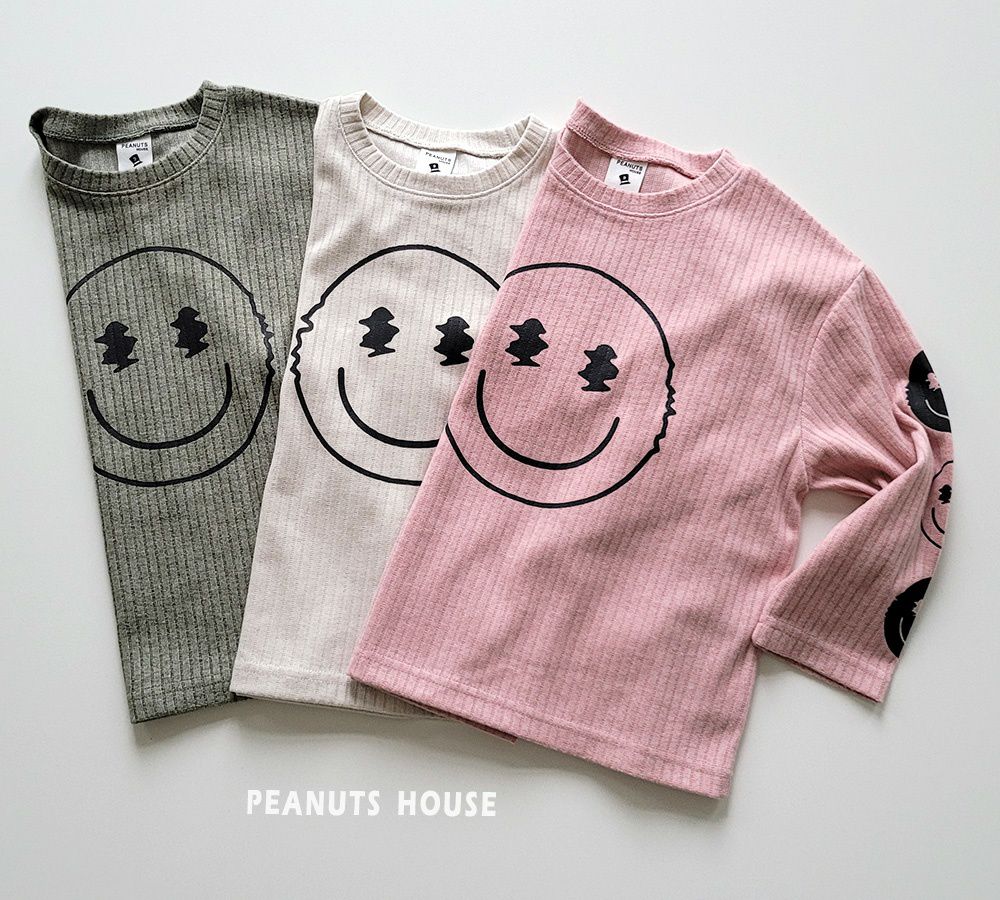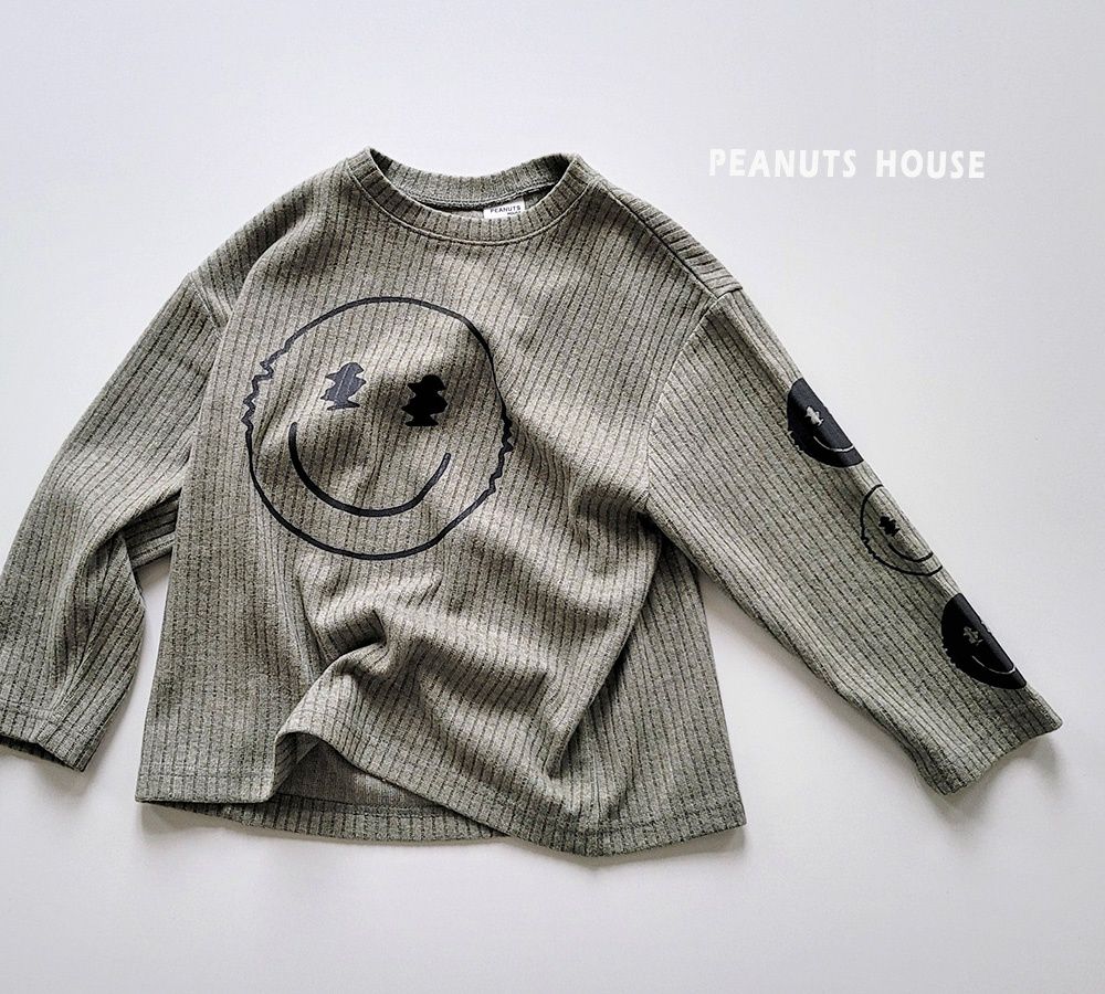 韓國 Peanuts House - 變形笑臉印坑條長袖上衣