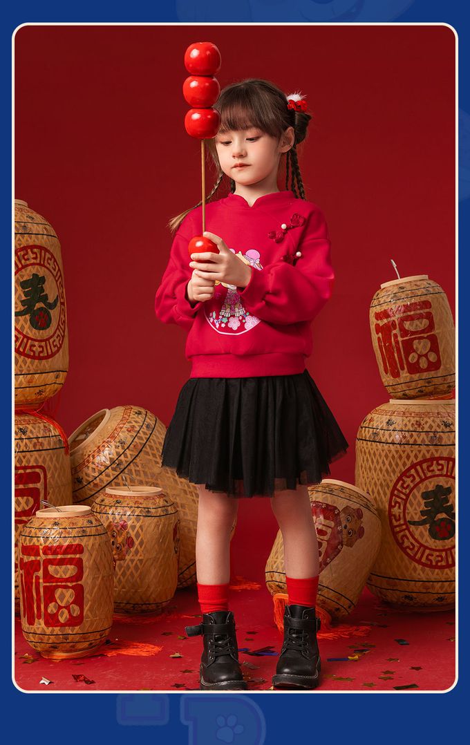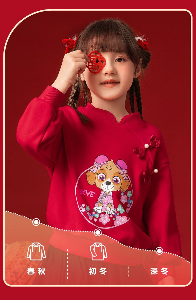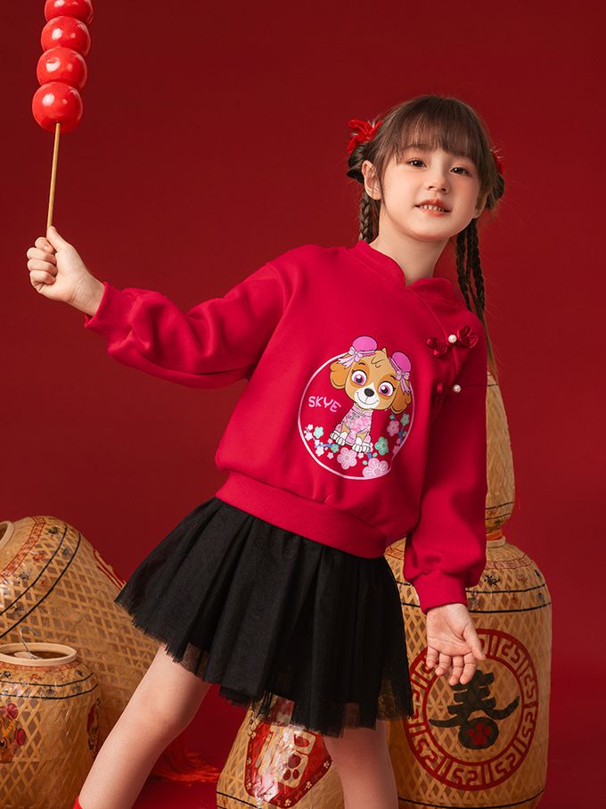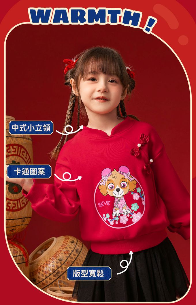 卡通汪汪隊中式小立領加絨長袖上衣/大學T-卡通人物天天-紅色