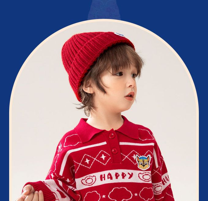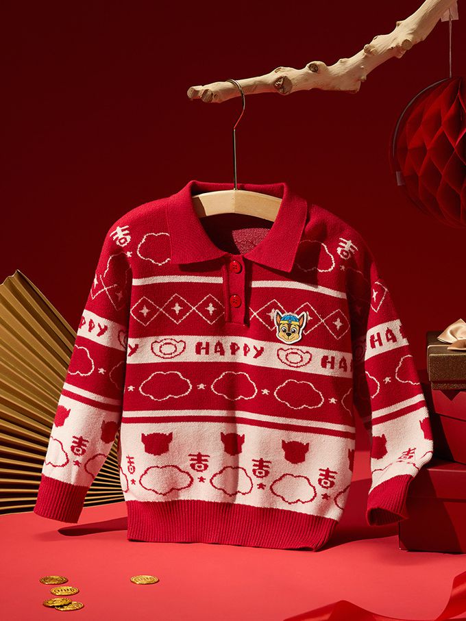 卡通汪汪隊翻領針織長袖上衣/毛衣-卡通人物阿奇-紅色