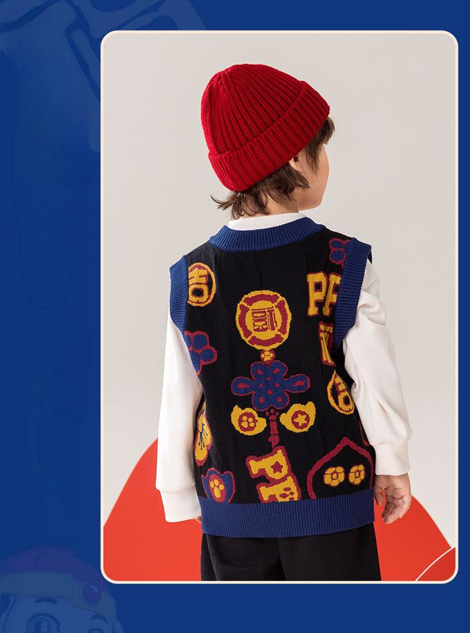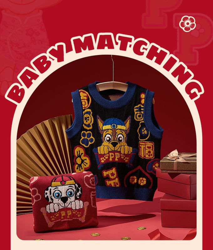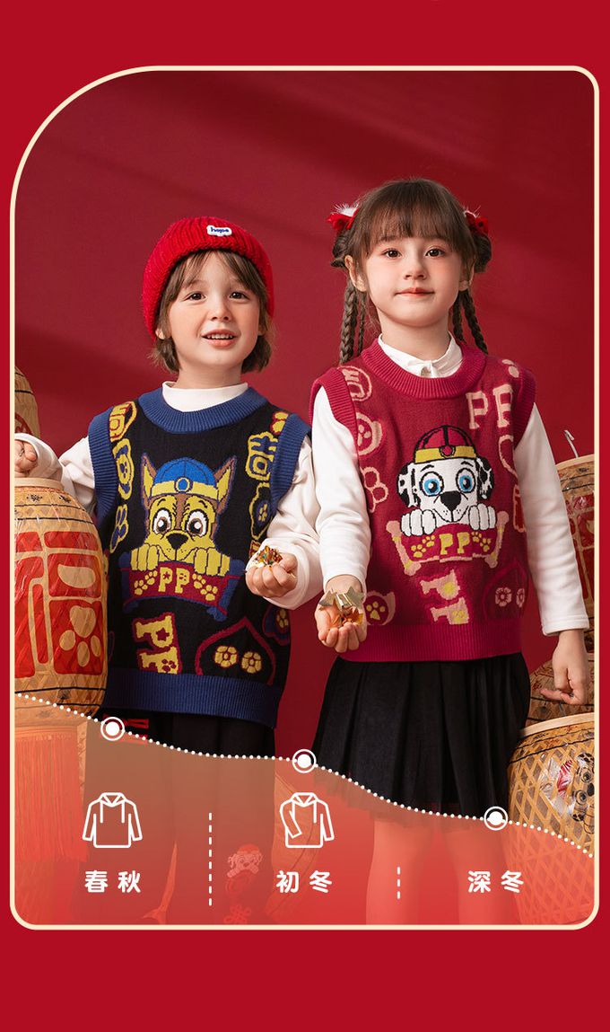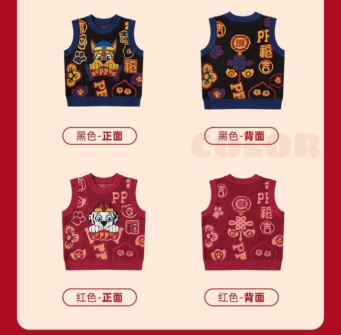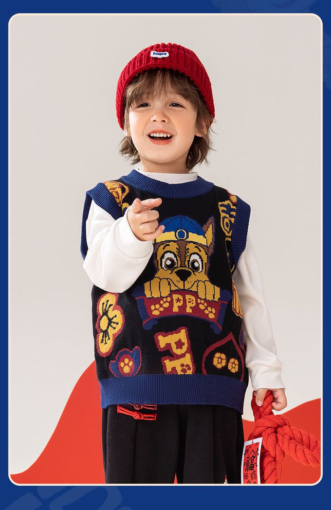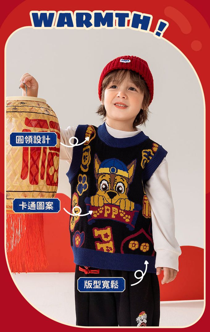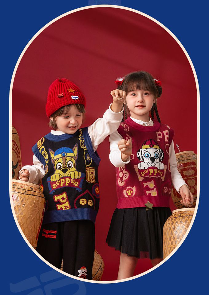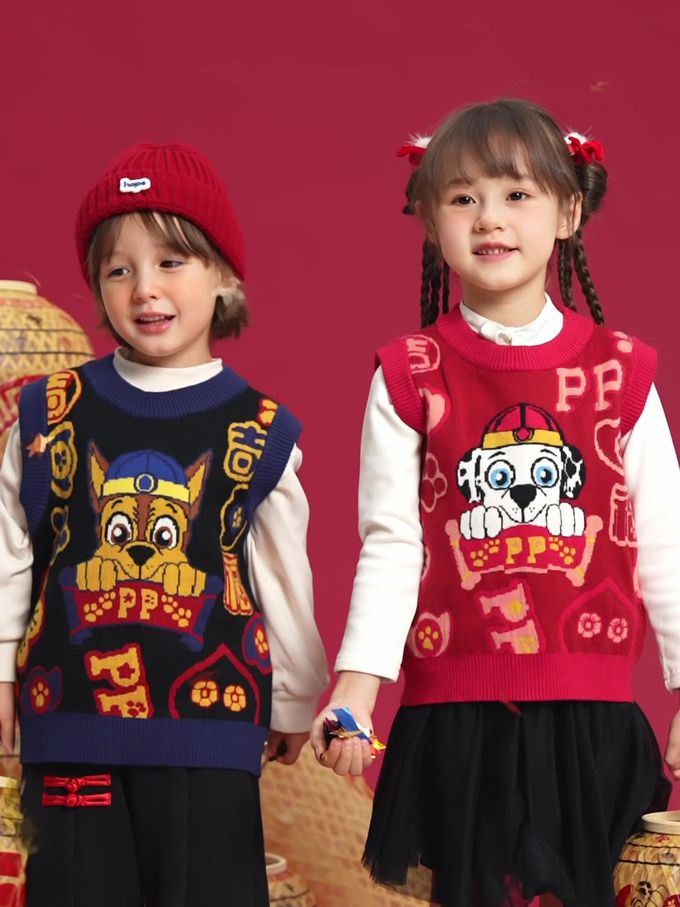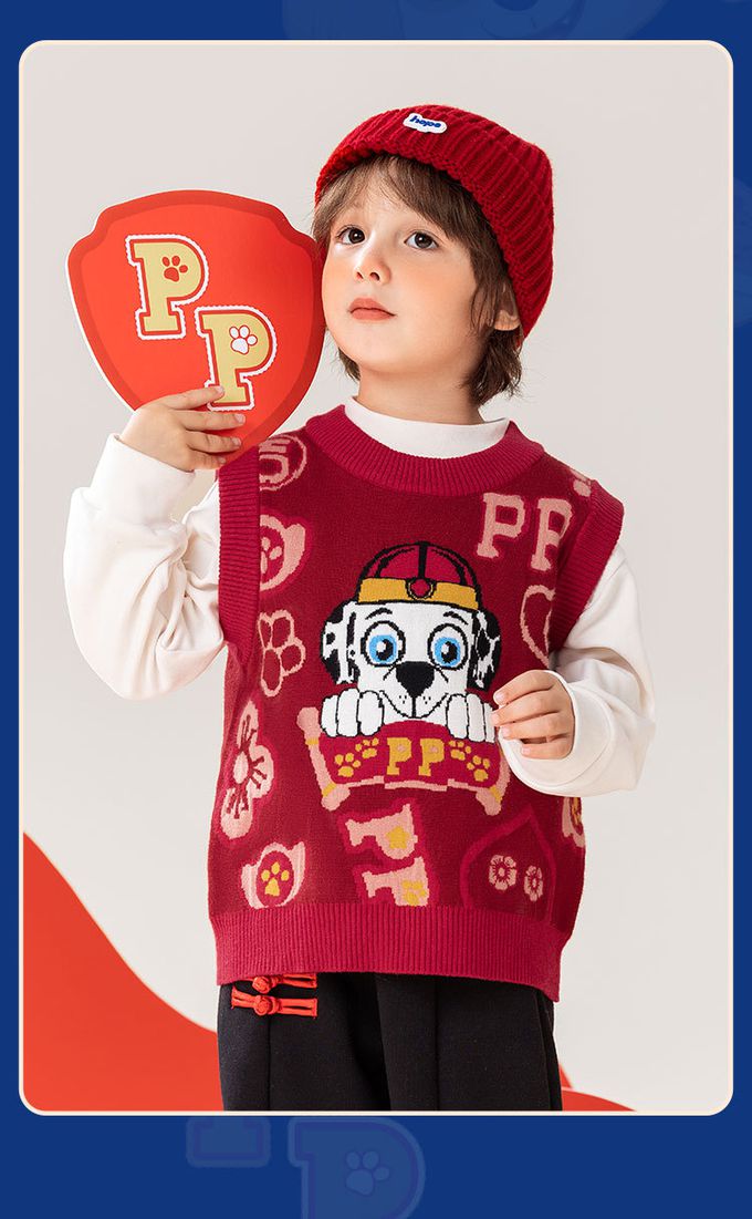 卡通汪汪隊圓領針織背心-卡通人物毛毛-紅色