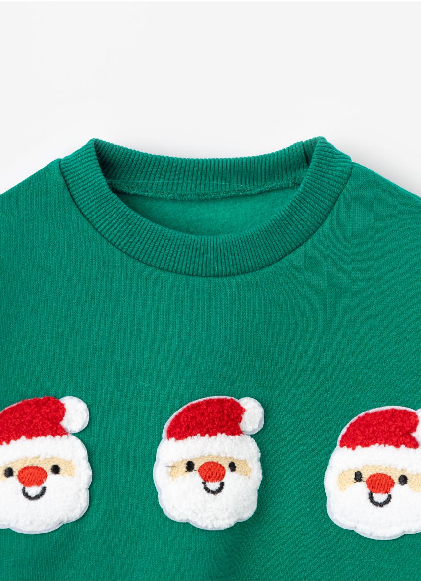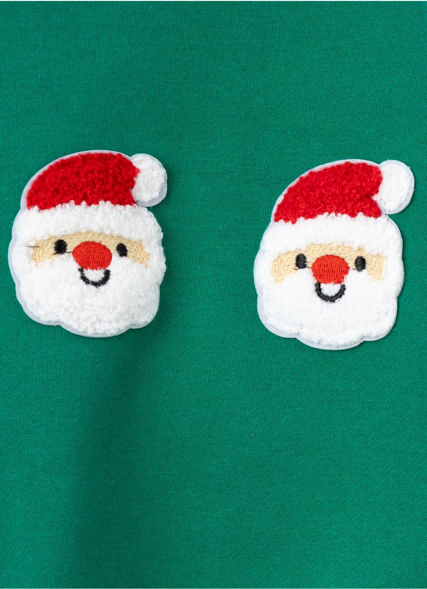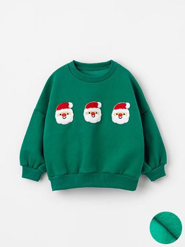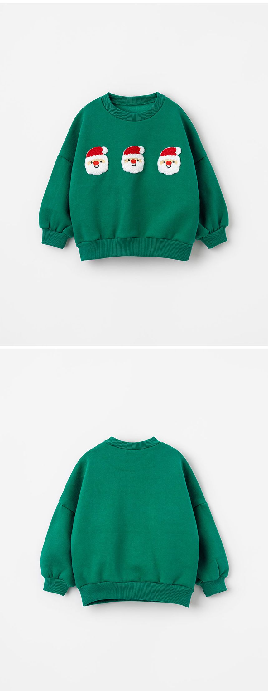 韓國 OZKIZ - (內磨毛)毛絨聖誕老人長袖大學T-綠