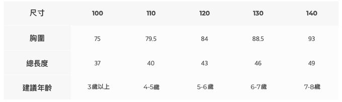 100號 [95~100cm]、110號 [100~110cm]、120號 [110~120cm]、130號 [120~130cm]、140號 [130~140cm]