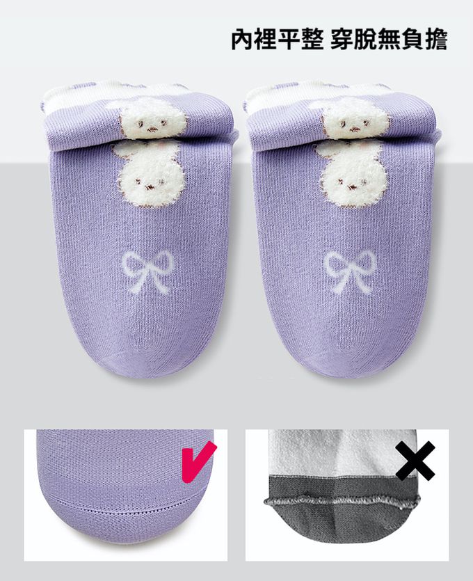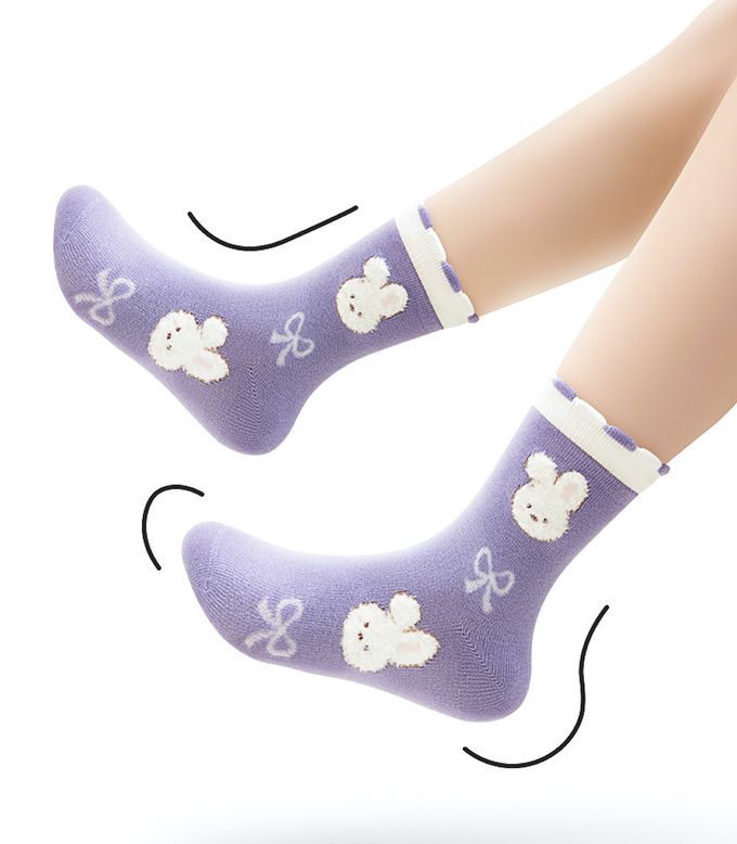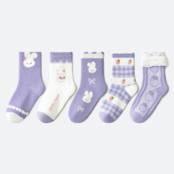 毛毛白兔草莓純棉中筒襪-薰衣草紫-5 雙一組