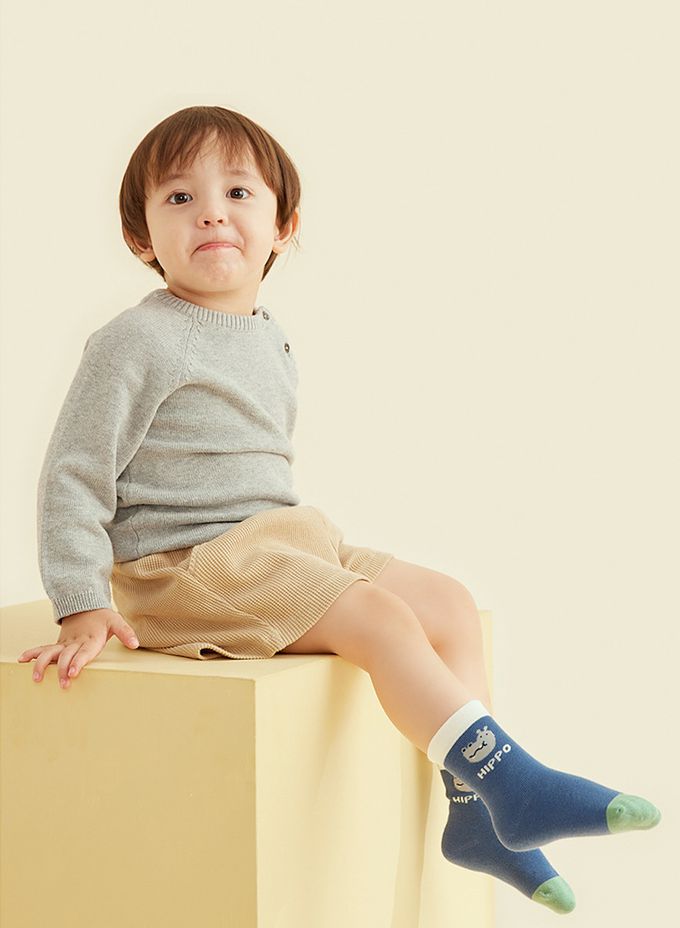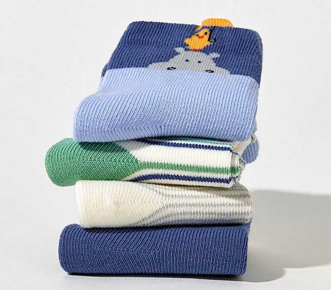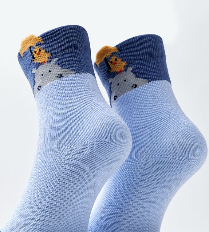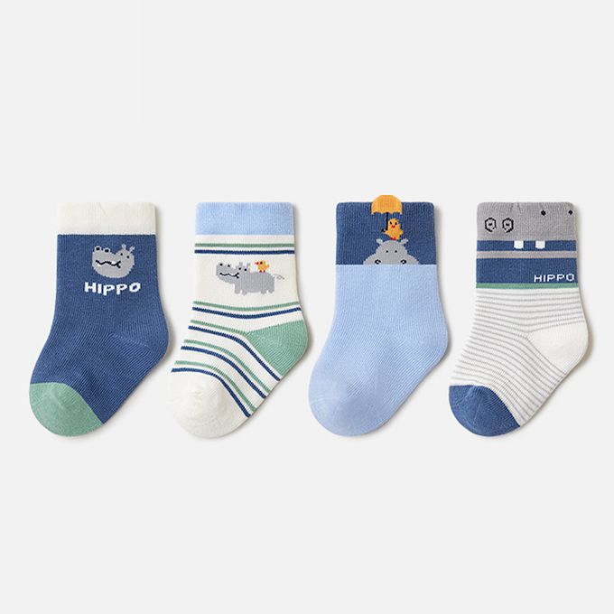 可愛河馬小鴨中筒純棉襪-4 雙一組