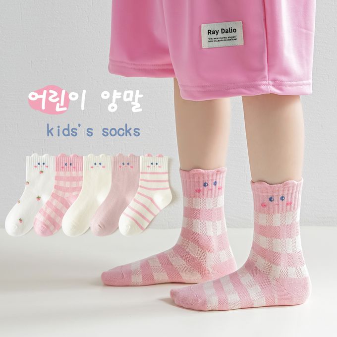 粉色系甜心腮紅中筒棉襪-5 雙一組